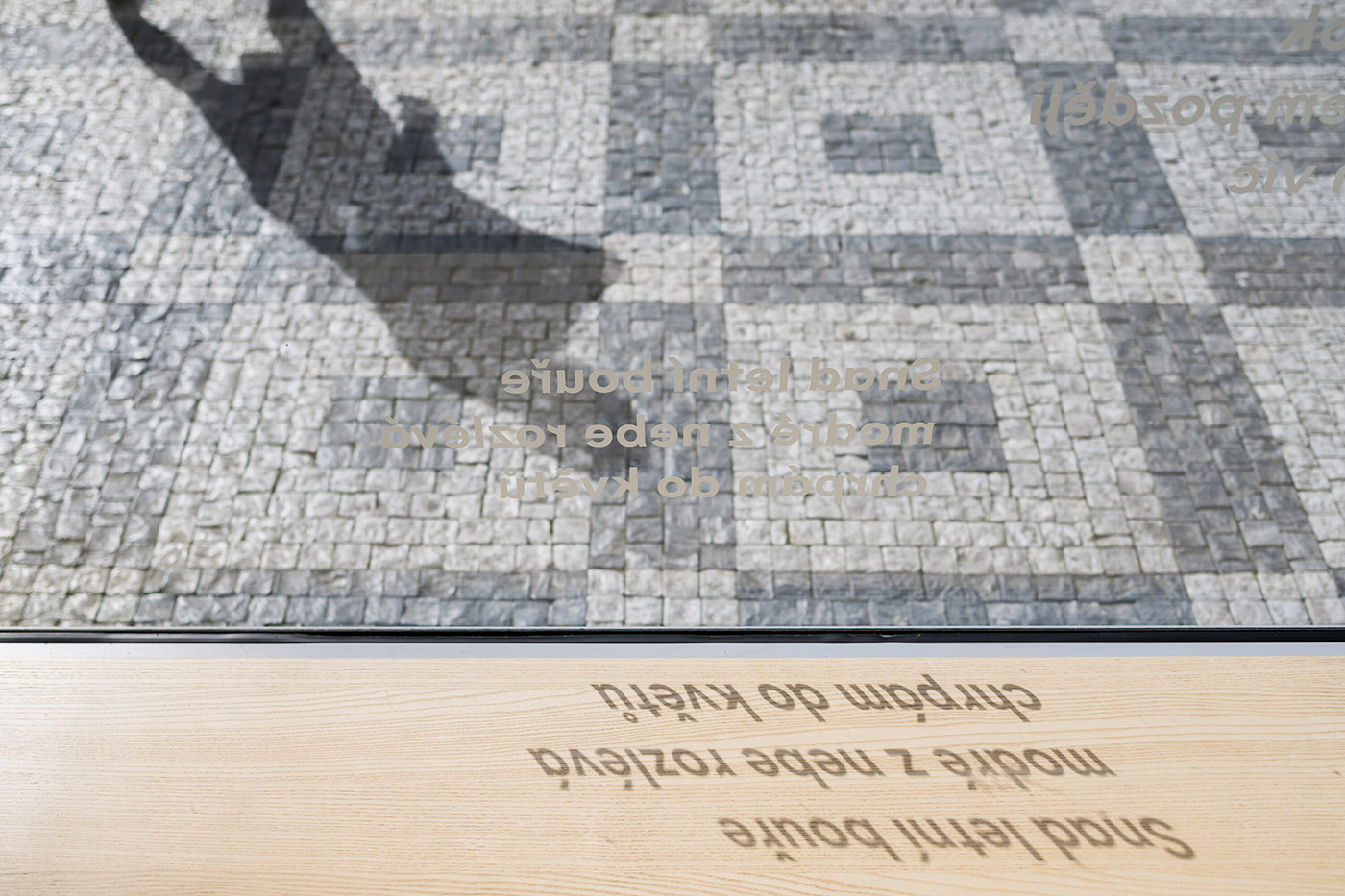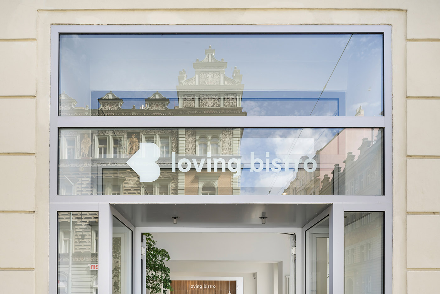 Poetic verses by Petr Petřiček screen-printed on the windows, project onto the soft-toned interior of Loving Bistrò and induce the passerby to slow down and think. The atmosphere of the restaurant is transformed to induce tranquility, not only because of the stylistic choices of the intervention, but also because of the patron's peaceful philosophy of veganism