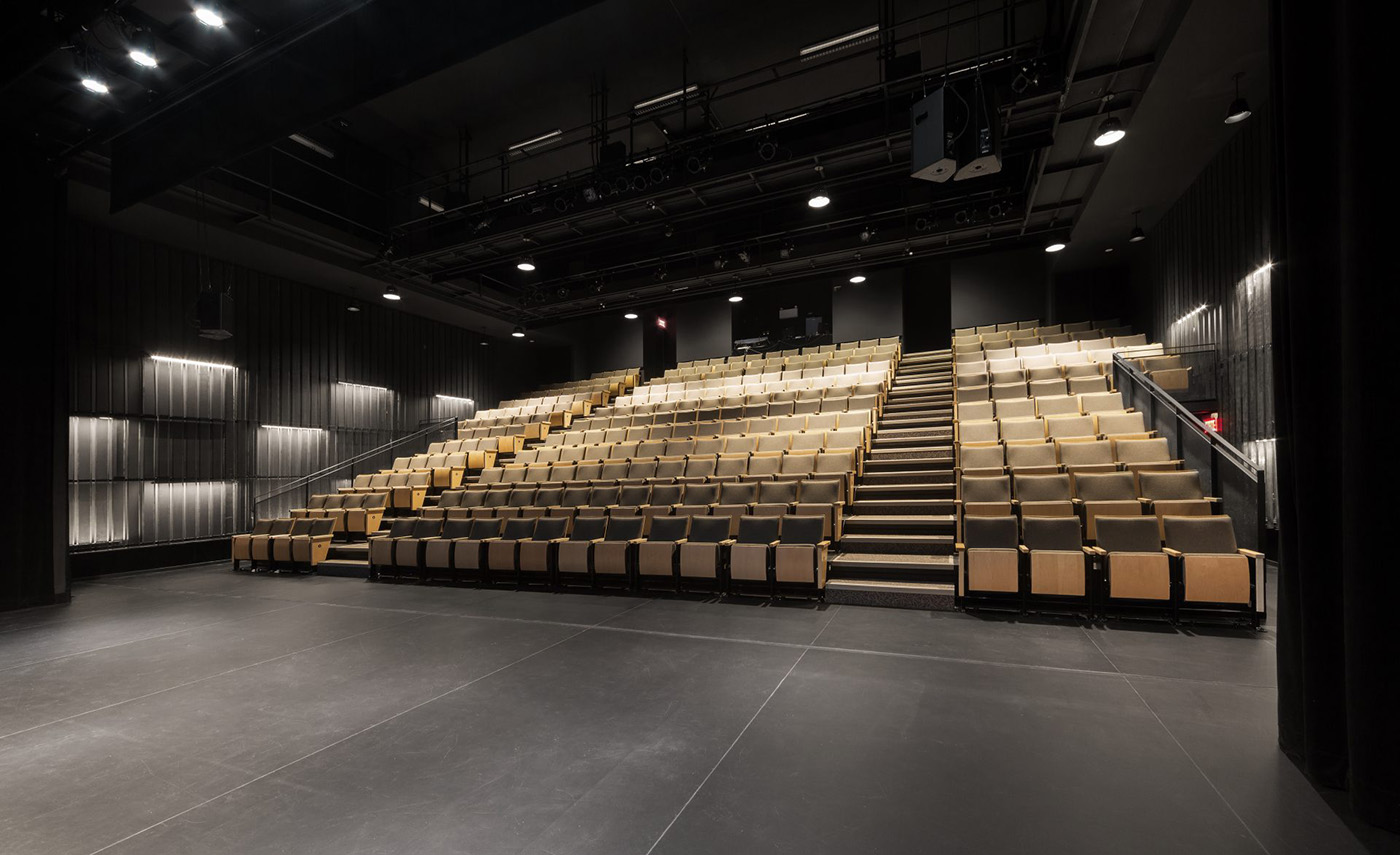 The project required the renovation of the building as well as the replacement of the electromechanical installations. The cultural centre includes an auditorium, an exhibition hall, a cafeteria, an entertainment room and administrative spaces. To underline the new civic vocation of the site, a new square and a tensile structure were added to the front of the building
