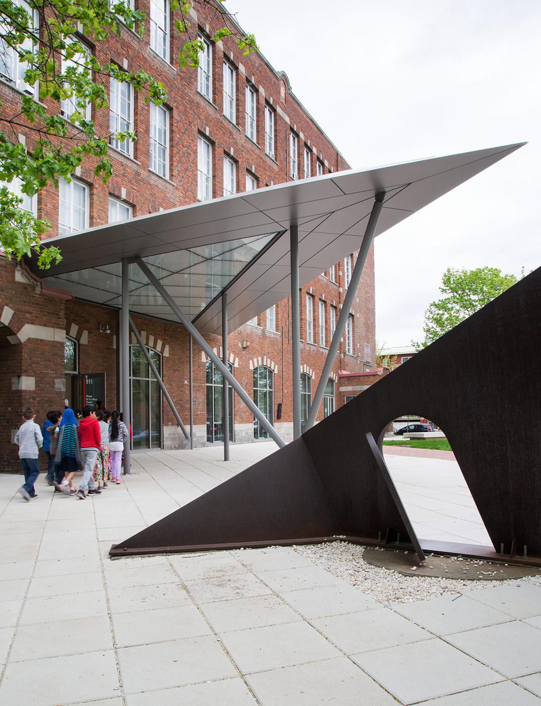 The former Peace Centennial School in Villeray, designed at the turn of the century by architect Percy Erskin Nobbs is being renovated by architecture studio FABG, both in its building enclosure and in the rearrangement of the ground floor