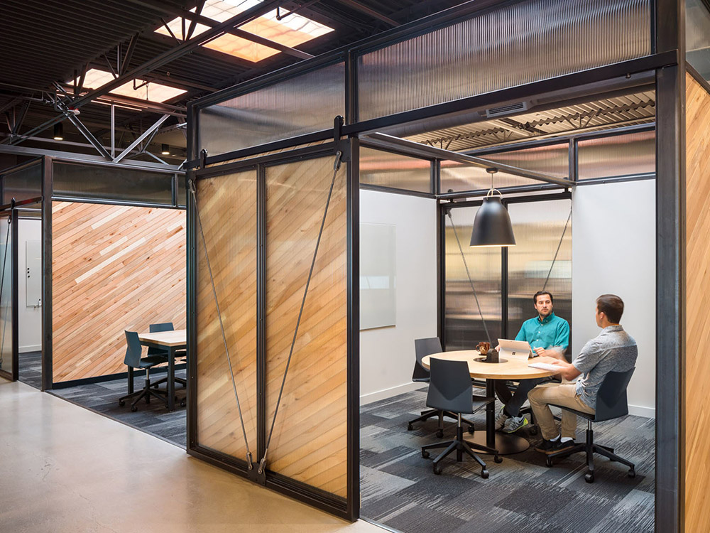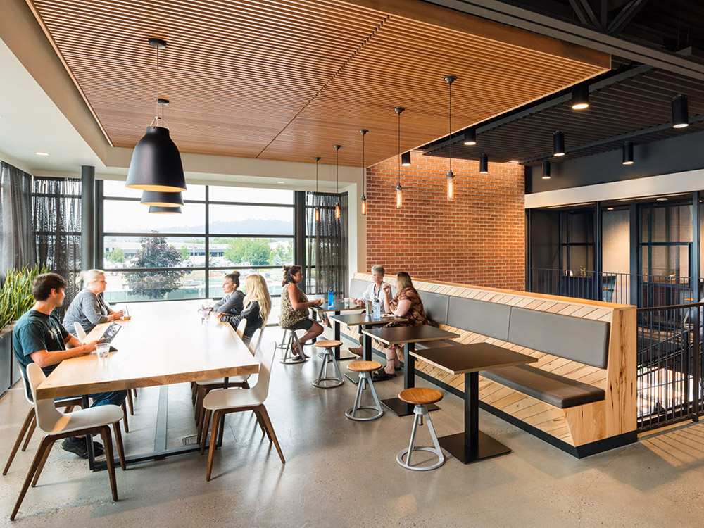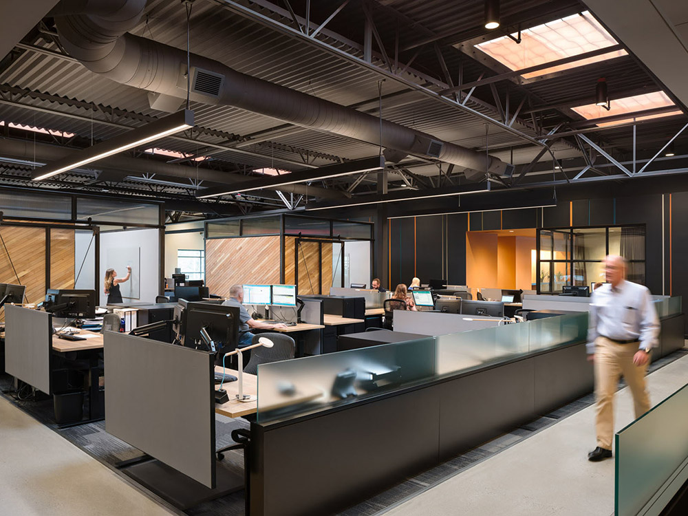 The project, by Holst Architecture studio is reserved for a family-owned beverage company and transforms an outdated workspace into a modern open office with various spaces to support different operational needs