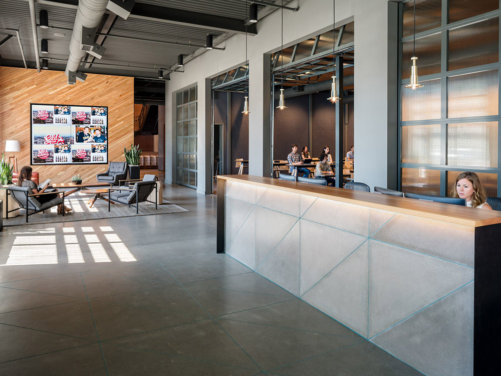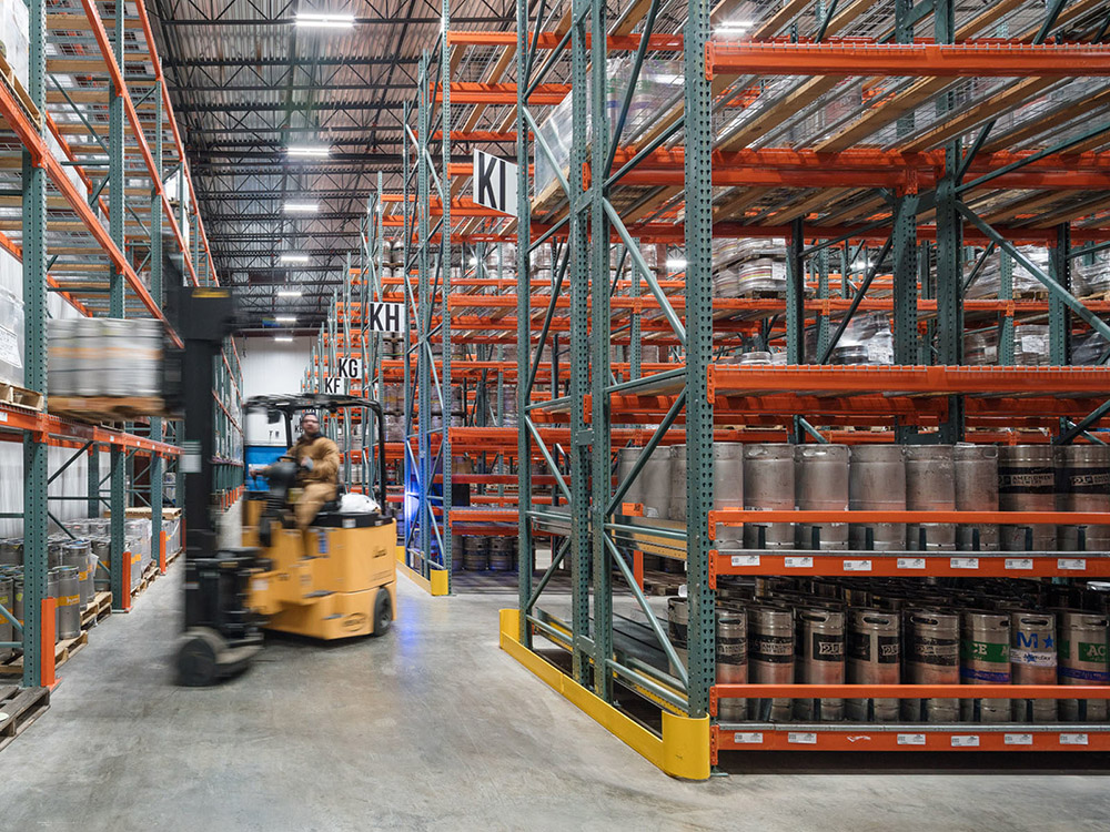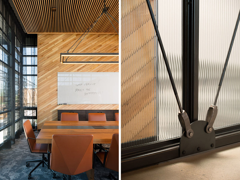 The design and material palette support the company's values and culture by taking inspiration from the industrial nature of the site. The facility features a lounge area that attracts local brewers for representation and distribution and the expanded sales room also serves as a space for supplier events