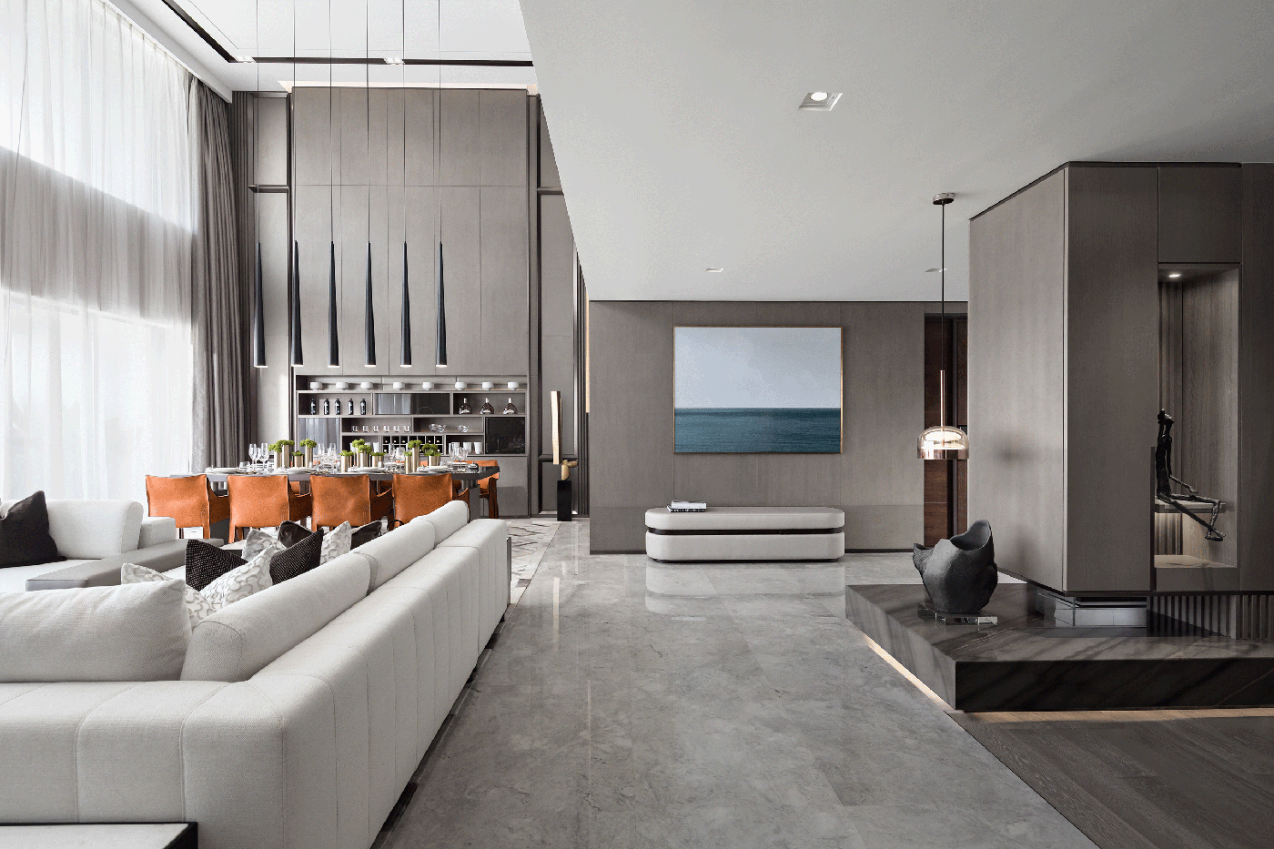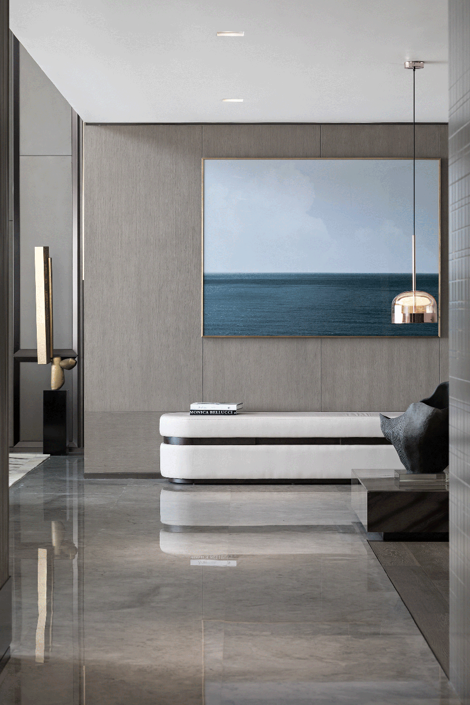 A secluded, elegant city flat in Mangrove Citic Bay Zhuhai, a flat characterised by a minimalist, delicate and chic design that meets both Chinese aesthetic taste and the needs of modern urban life