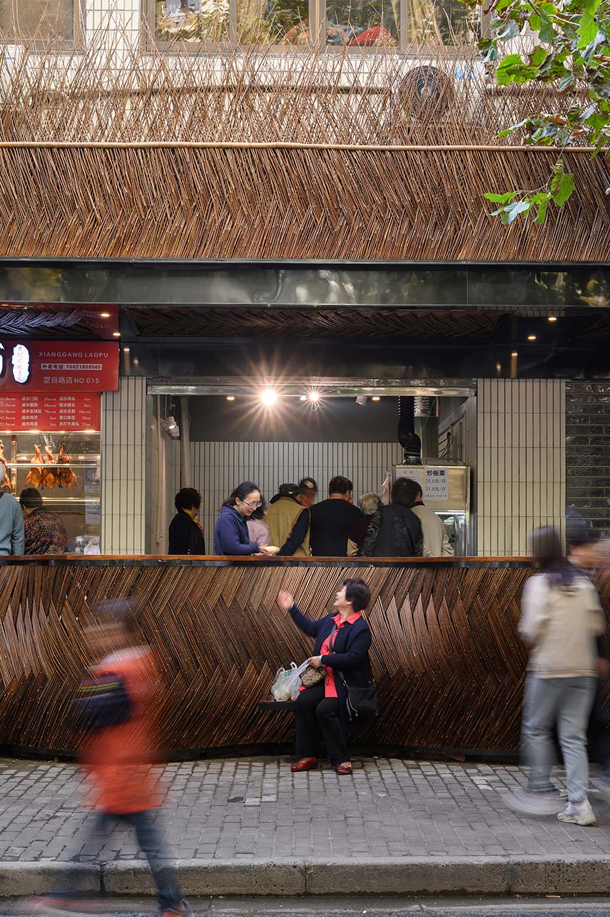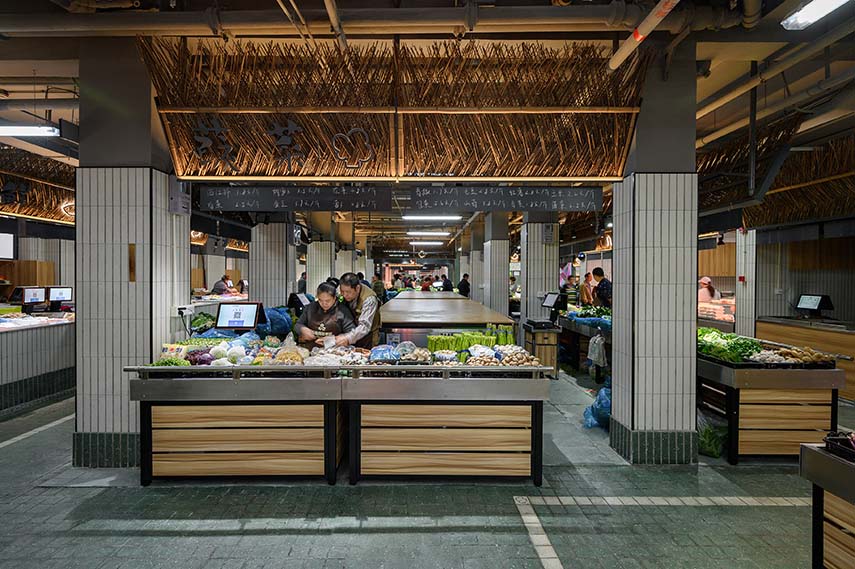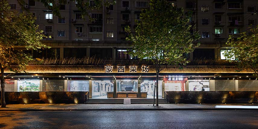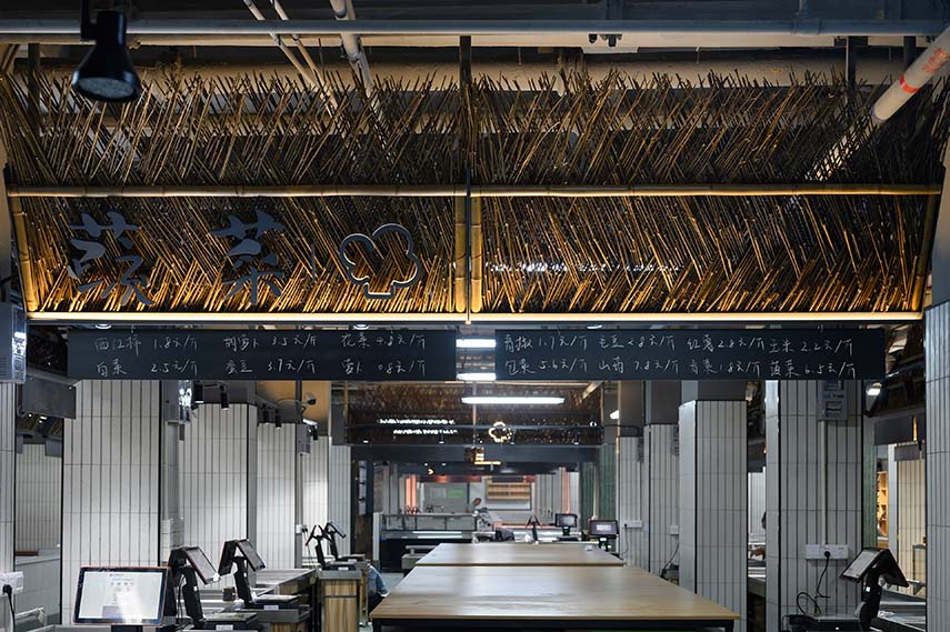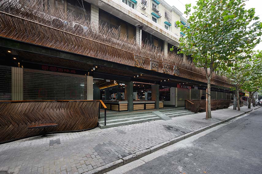 Shanghai's food markets should have elements typical of Shanghai: plane trees intertwining with Art Deco villas on the street edges, and age-old bamboo fences, forming the city's characteristic alleys. For the renovation of the Mengxi Food Market, wild bamboo was chosen as the main material, alluding to the rural and wild theme and the style of the "old Shanghai."