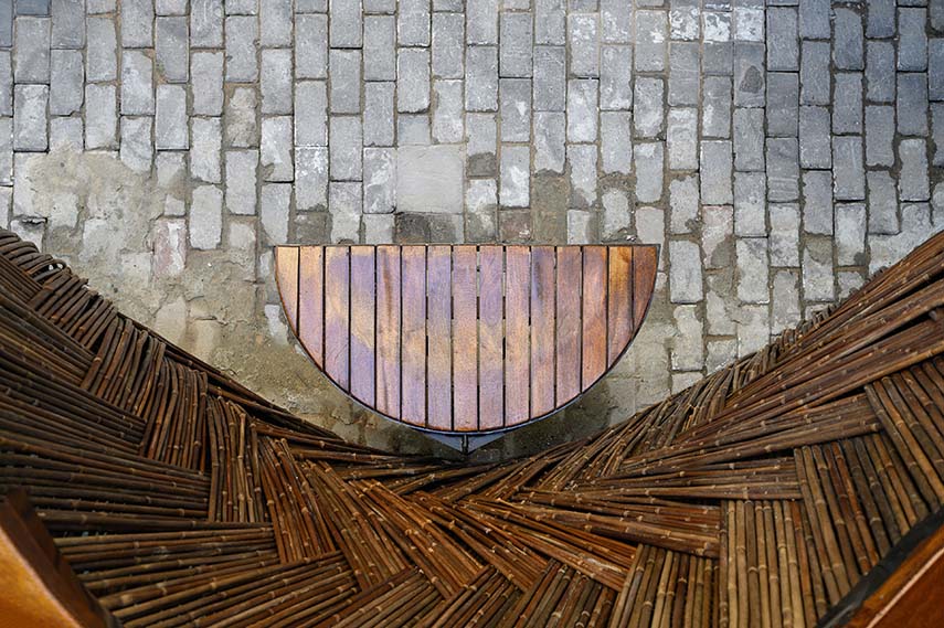 The Mengxi Food Market has a façade that stretches for almost 50 meters, with a staircase leading up to the market level. Based on these unique physical structures, Roarc Renew transformed the handrail into regular curving waves, blurring the boundary between the market and the street. Observing the habits of the customers, they noticed that some elderly people used to stop at pedestrian walkways to play chess: the small empty spaces created by the wild bamboo fences were specifically designed for them and for those who need a little rest