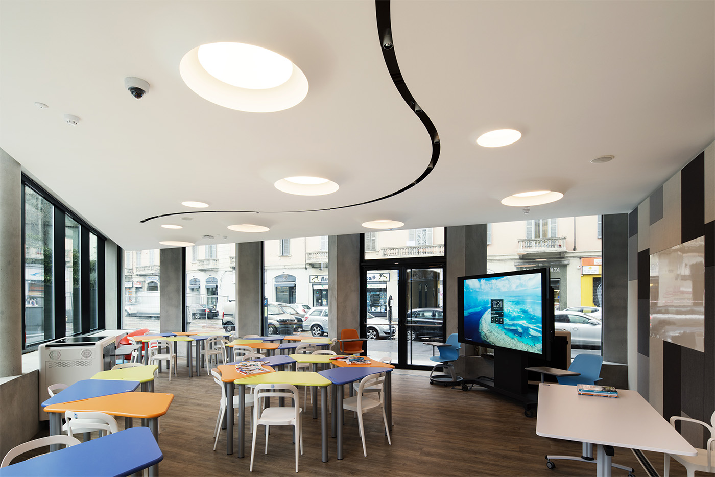 The 7,500 square meters of Microsoft's headquarters are designed according to a free and fluid organization of spaces. The Open Spaces dedicated to the work areas do not have any dedicated workstation: each person is free to move around in the various environments according to their needs.