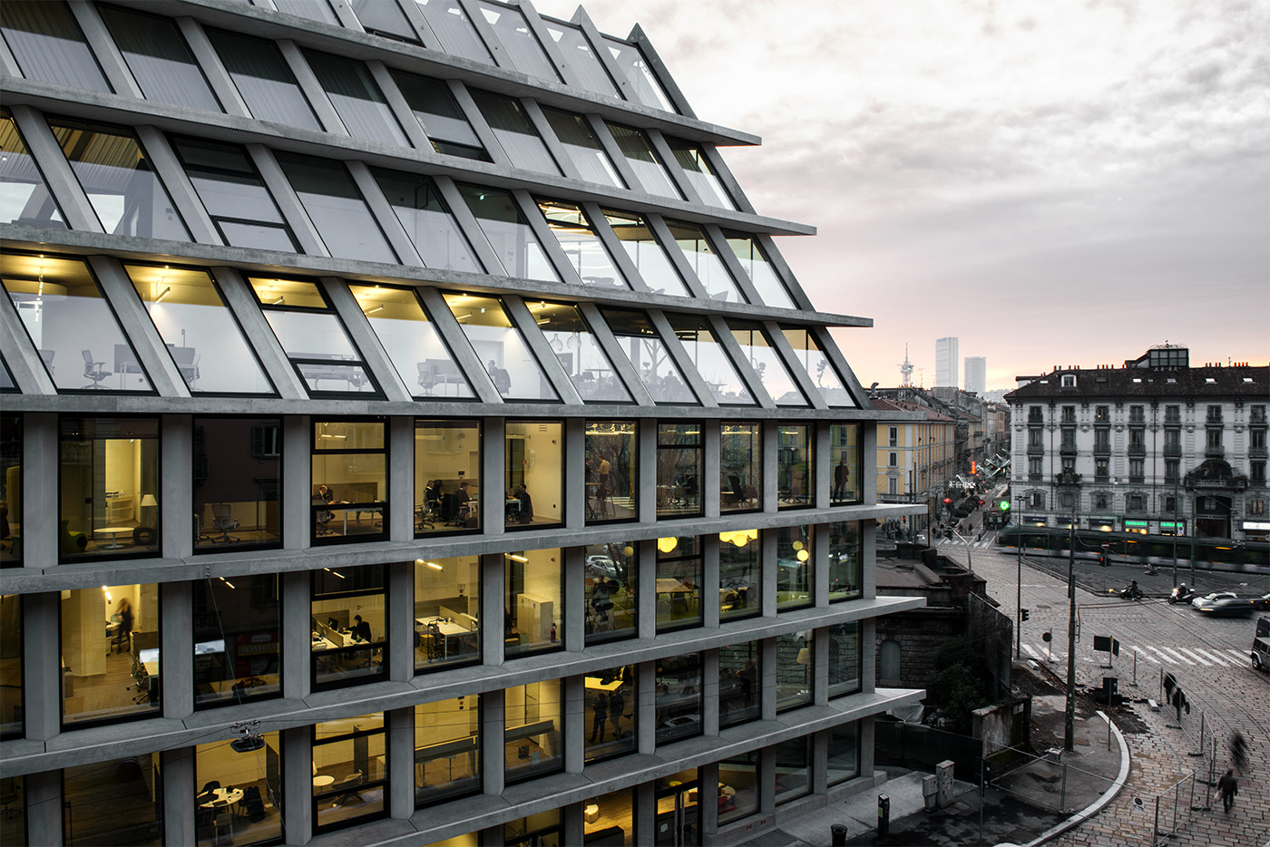The building is on 6 floors above ground. The ground and first floors, connected by a central staircase are dedicated to the Customer Area which is open to the public and also hosts product showcases. From the second to the fifth floor are spaces reserved for employees and collaborators of the company where the architectural choices create a warm and welcoming environment characterized by the use of natural materials such as wood