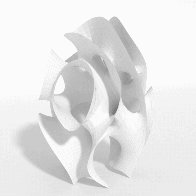 The project extends the research and development efforts of MARC FORNES / THEVERYMANY to achieve structural integrity through ultra-thin self-supporting aluminum surfaces, which find their strength in the double curvature of their form