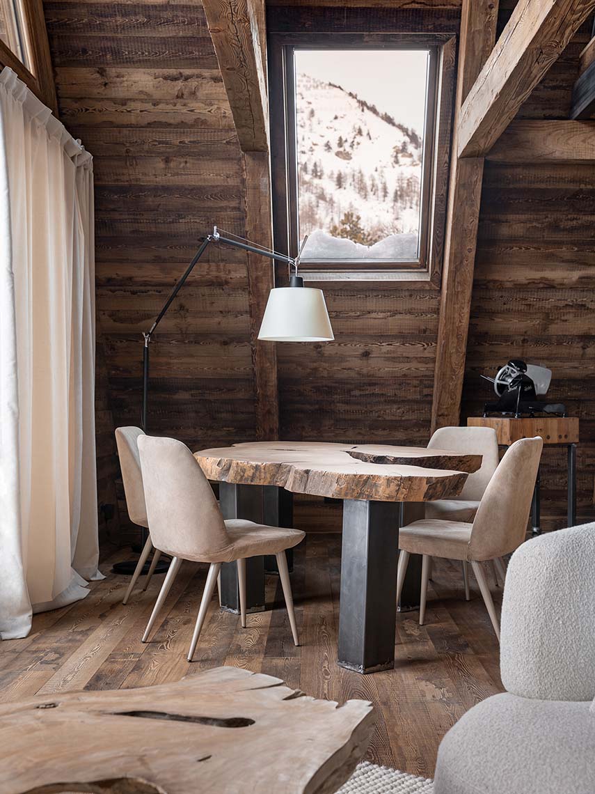 The project was born in 2021 from the desire of the clients to transform an old rustic building into a modern and welcoming chalet. The clients already had a general shape in mind, but were looking for a new vision of the interior spaces and livability. The building thus takes on an iconic silhouette, similar to an Indian tent, where the roof becomes a wall, recalling the cuneiform profile of the surrounding mountains. The large glass surfaces at the opposite ends open the house to the landscape, while the opaque slopes house integrated photovoltaic panels.