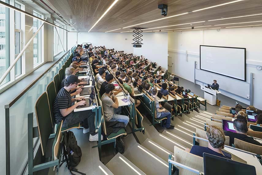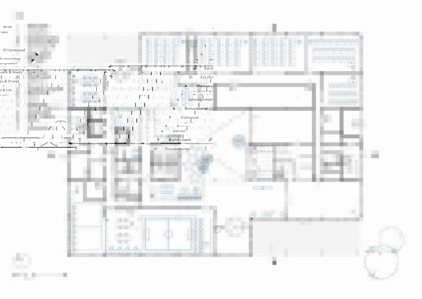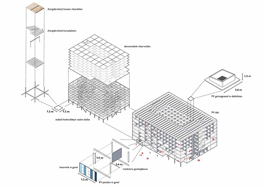 In line with this type of architectural projects, the Benthem Crouwel Architects studio, in an integrated design team with Uva Real Estate Development, Bouwadviesbureau Strackee, Deerns, DGMR, and Studio Groen + Schild, designs LAB42 as a place that is highly flexible, energy-neutral, highly circular, and sustainable. It houses the Institute of Informatics (IVI), the Institute of Logic, Language and Computation (ILLC), the Innovation Center for Artificial Intelligence (ICAI), and entrepreneurs in the field of digital innovation and artificial intelligence (AI)