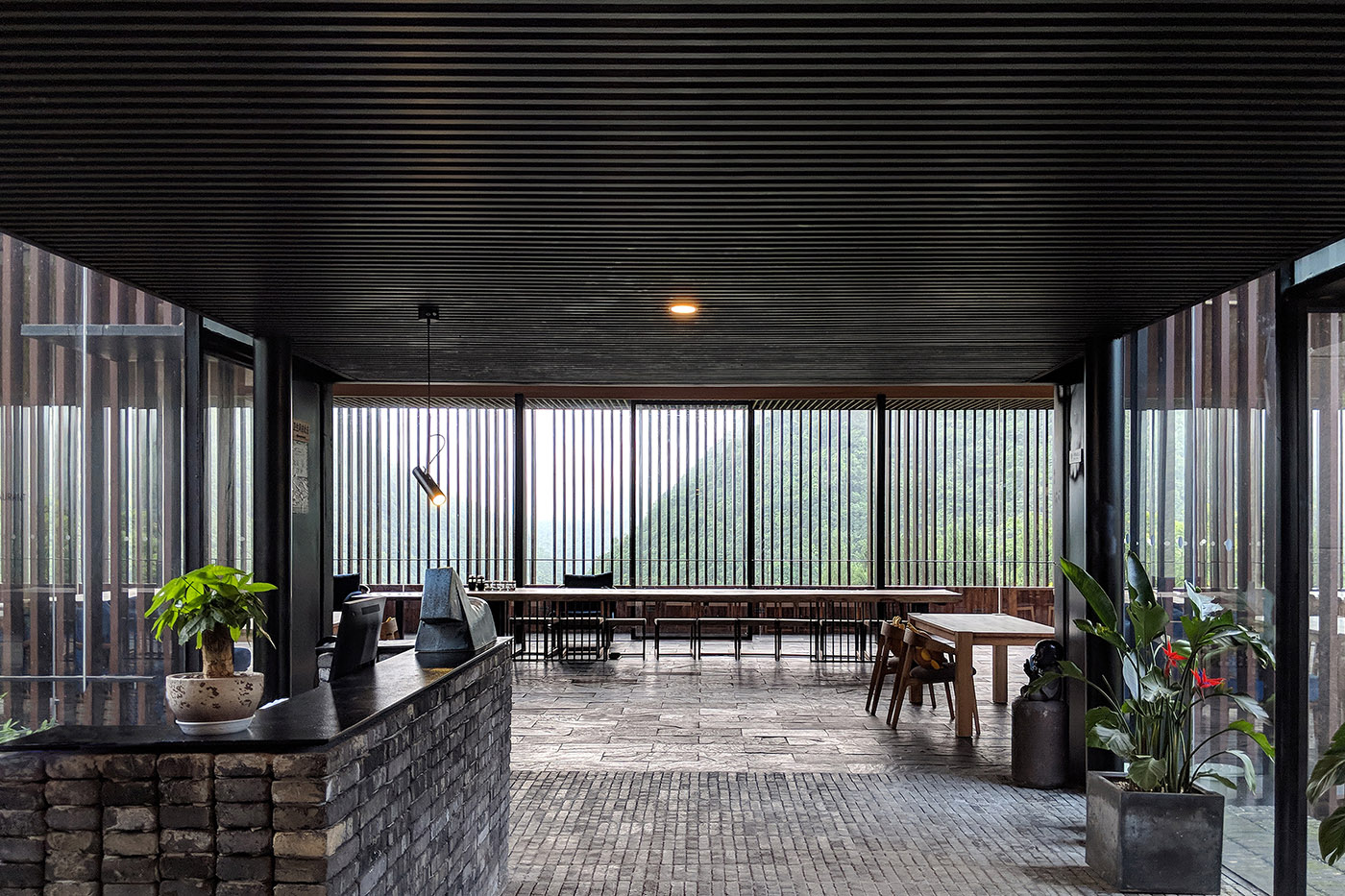 In just six months from the start of ZJJZ Architecture's project, Mountain Restaurant & Bar opened its doors, thanks to the use of steel structures that could be built quickly. The architecture is adapted to the site, which is located on a steep slope near a bamboo forest, overlooking the valley
