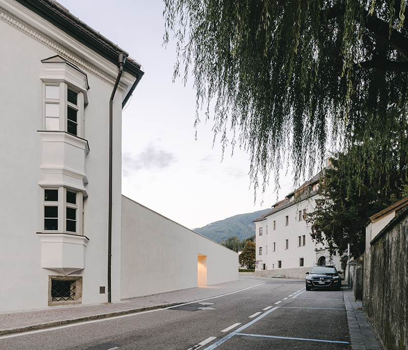The project proposes the construction of a new boundary, enabling the characteristic urban fabric of Brunico consisting of noble villas and sealed gardens to have continuity, while at the same time highlighting the urban presence of Casa Ragen, thanks to the very sober character of the extension that integrates perfectly with what already exists