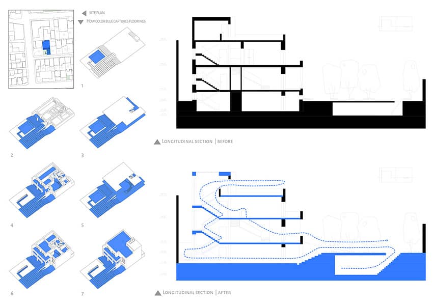 The property subject to redevelopment was designed by architect Paknia. The building's structure is based on load-bearing walls, and the overall construction is heavily influenced in its form by this construction technique. As such, in the functional conversion of the project for the Nabshi Gallery, the rigidity of the structural grid has introduced some challenges in the architectural design project to be addressed through design.