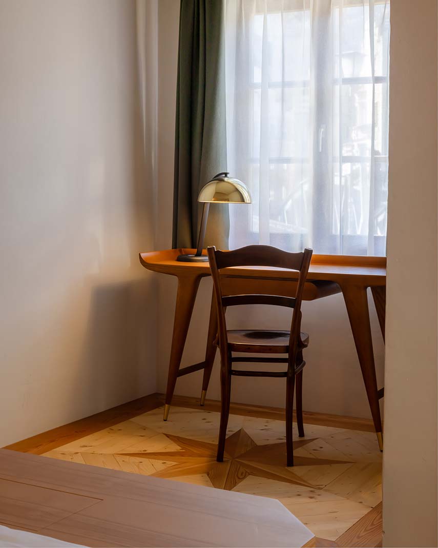 Owned by the Faller family for over 40 years, the 15th-century building is being transformed by the Vudafieri-Saverino Partners studio with a project that strikes the right balance between respecting historical elements and meeting contemporary living needs. The house's renovation reimagines its use, turning the first two floors into a 4-star superior Art Hotel and the top two floors into a residence for the family. The hotel consists of three suites, six double rooms, and one single room, totaling 10 rooms immersed in a sophisticated atmosphere enriched by the Fuller art collection