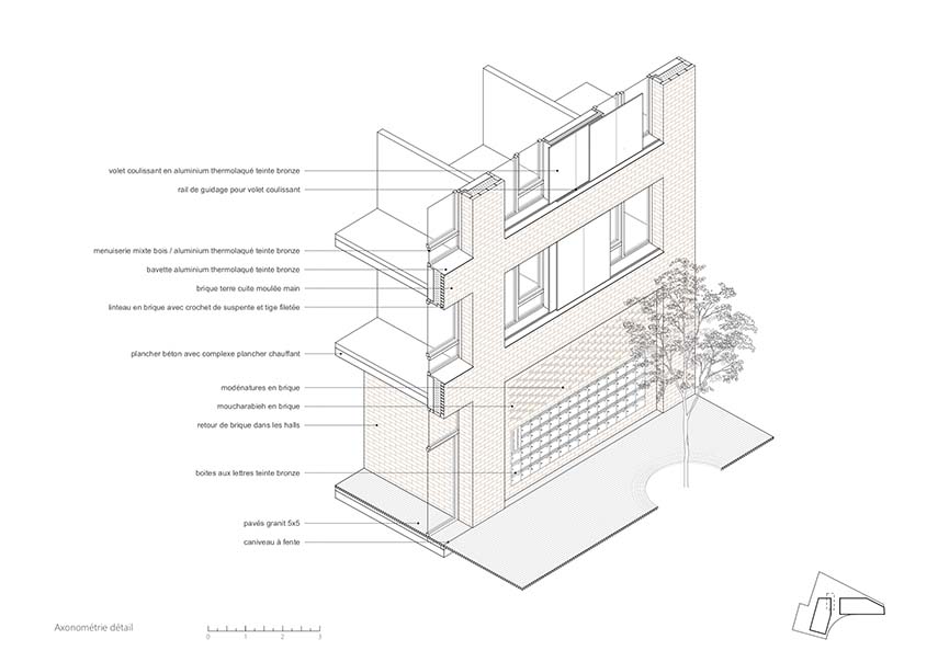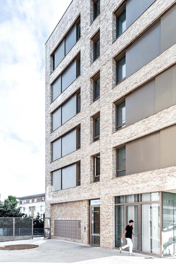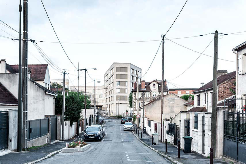 Located at the intersection of avenue du Président Salvador Allende, a large and busy street, the drivable Rue du Docteur Pinel, and the pedestrian street Charles Dehan, the new residence in Villejuif is one of the social residential architecture projects by the French studio Avenier Cornejo Architectes. Positioned at the strategic border between a residential neighborhood and the new urban area, the complex consisting of two buildings harmoniously and openly integrates with a dynamic and recognizable facade that can also be seen from afar, contributing to the new identity of the city area