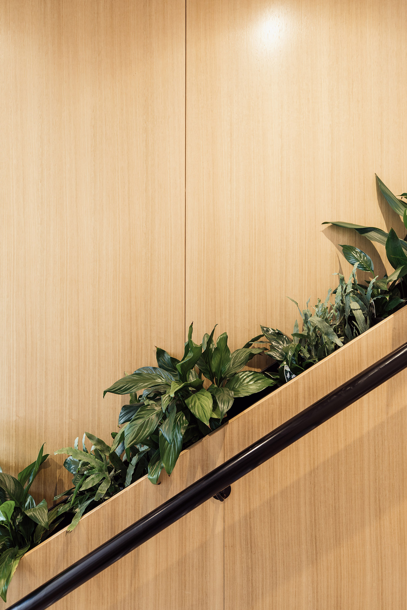 Plants that enhance the feeling of well-being were also useful in making some functional elements aesthetically pleasing. One example is the planter that serves as a handrail, becoming a pleasant, relaxing and welcoming detail, in keeping with the whole style of the studio