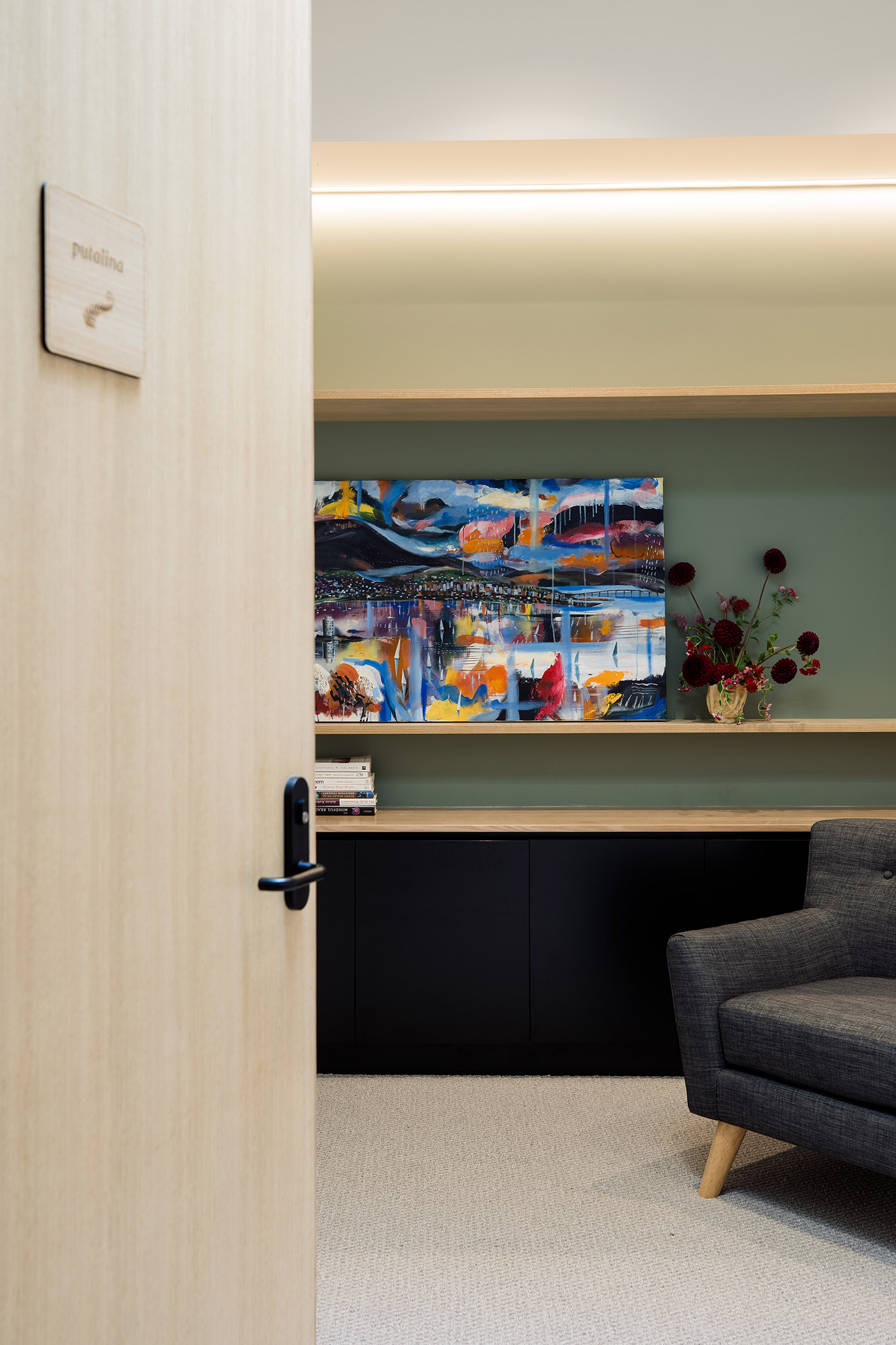 A quiet psychology practice in Tasmania. Peaceful light and a sense of welcome underpin the therapy as much as the space that houses it