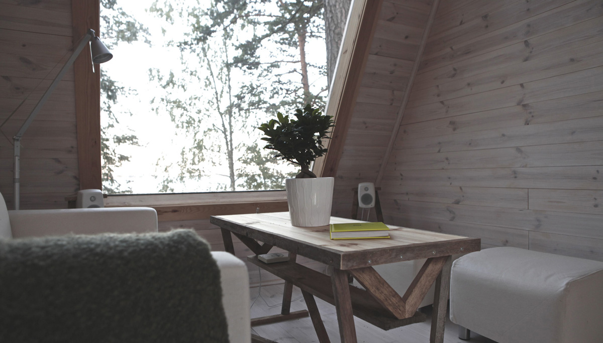 Wooden "Nest" in the woods in Finland. Local and recycled materials for Self-build Chalet