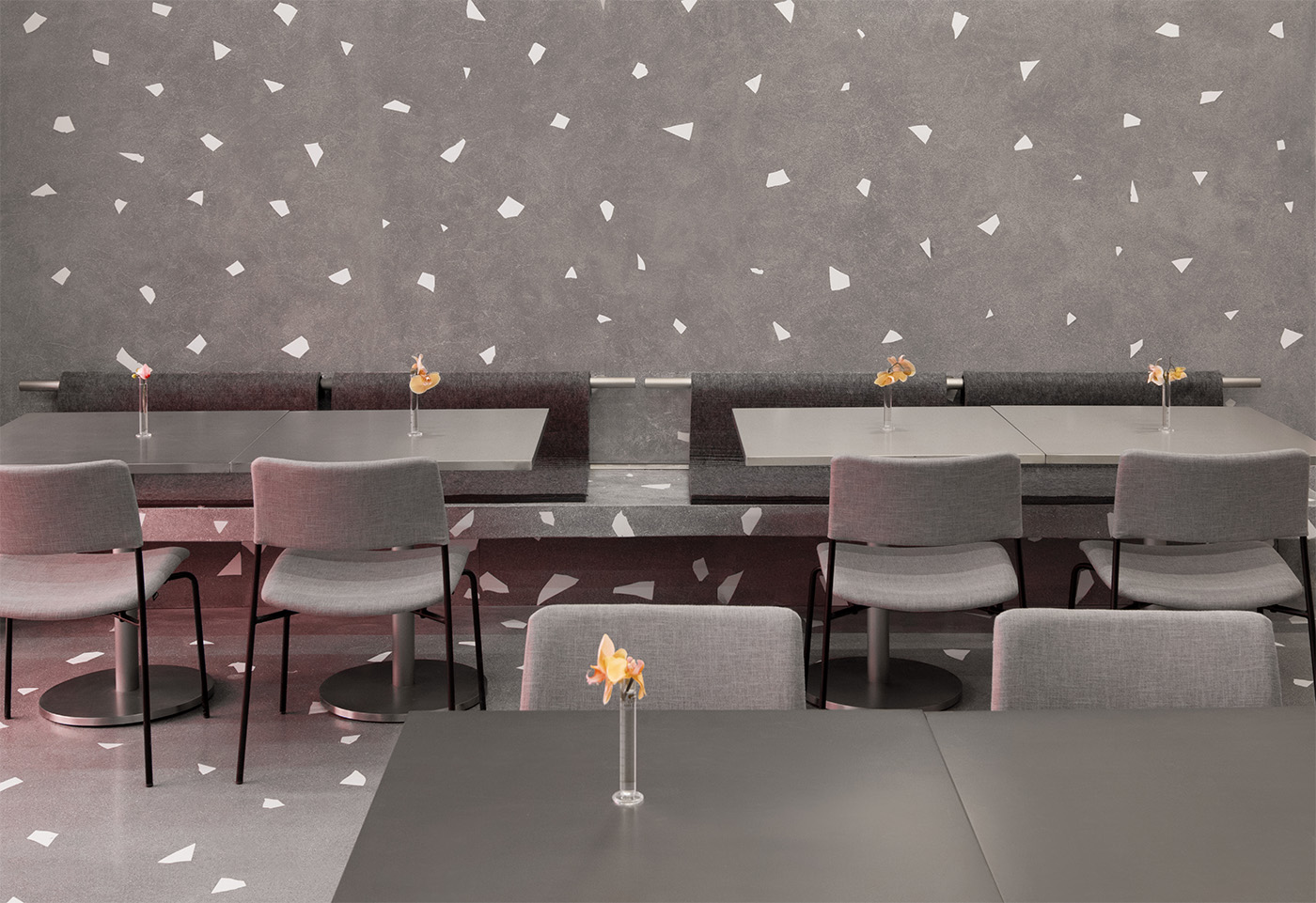 To maximize contact with space, a single material is used and it is precisely through the material mechanism that the customer's emotions are influenced, creating a unique visual and culinary experience.