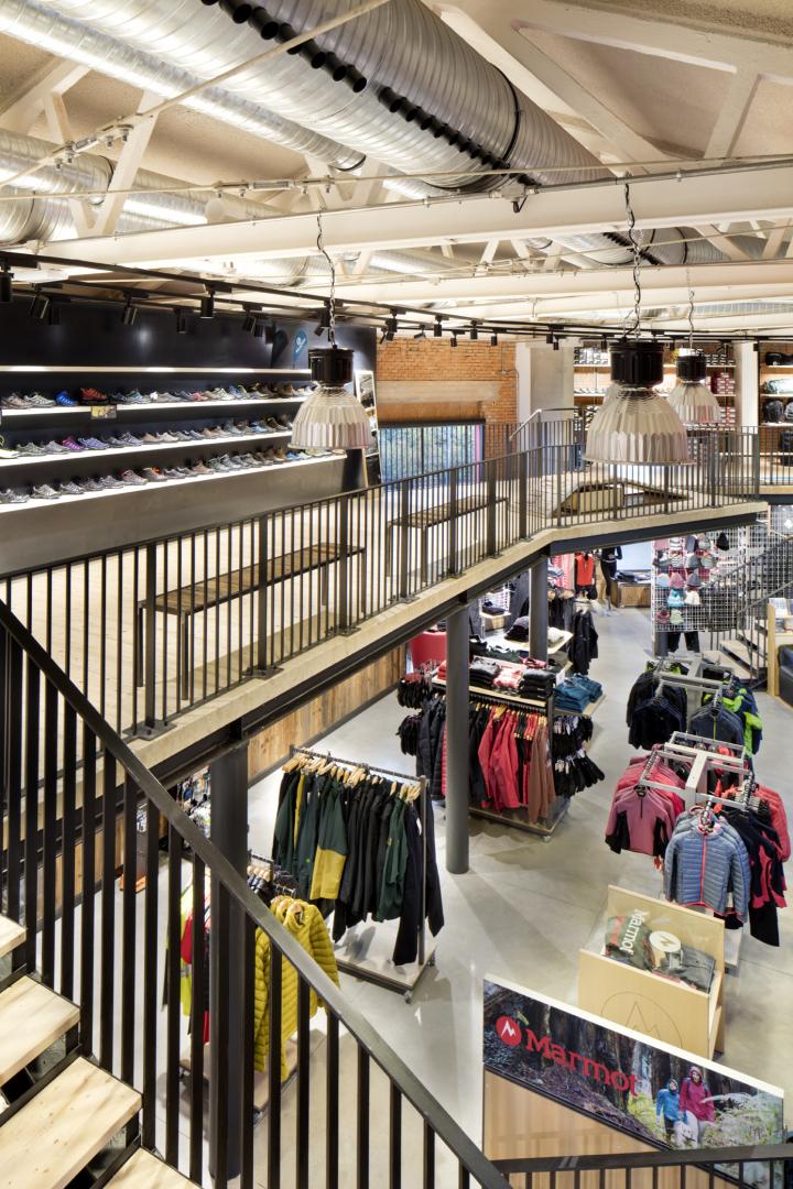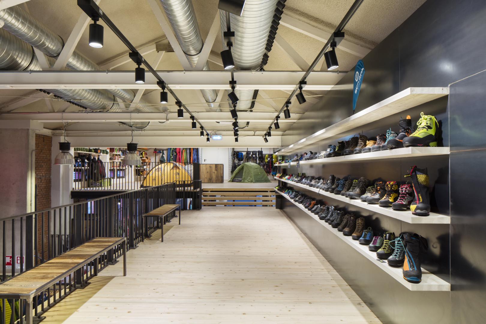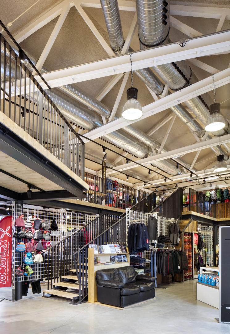 Un capannone artigianale del dopoguerra in muratura e cemento armato è stato riqualificato e trasformato dallo studio RP studio architetti associati in un negozio di abbigliamento tecnico
