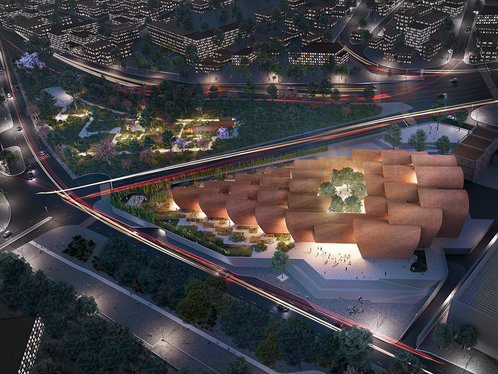 While originally used exclusively for religious buildings, in the project for the new cultural center designed by the architecture projects studio Fr-EE, they come into play as exemplary elements to celebrate the cultural identity of the State.