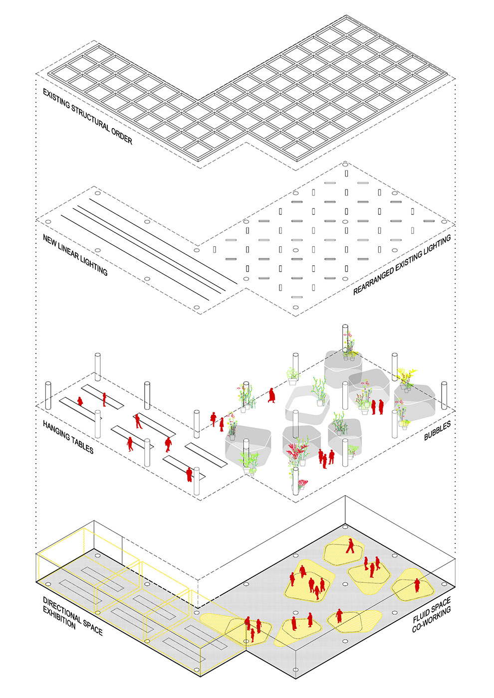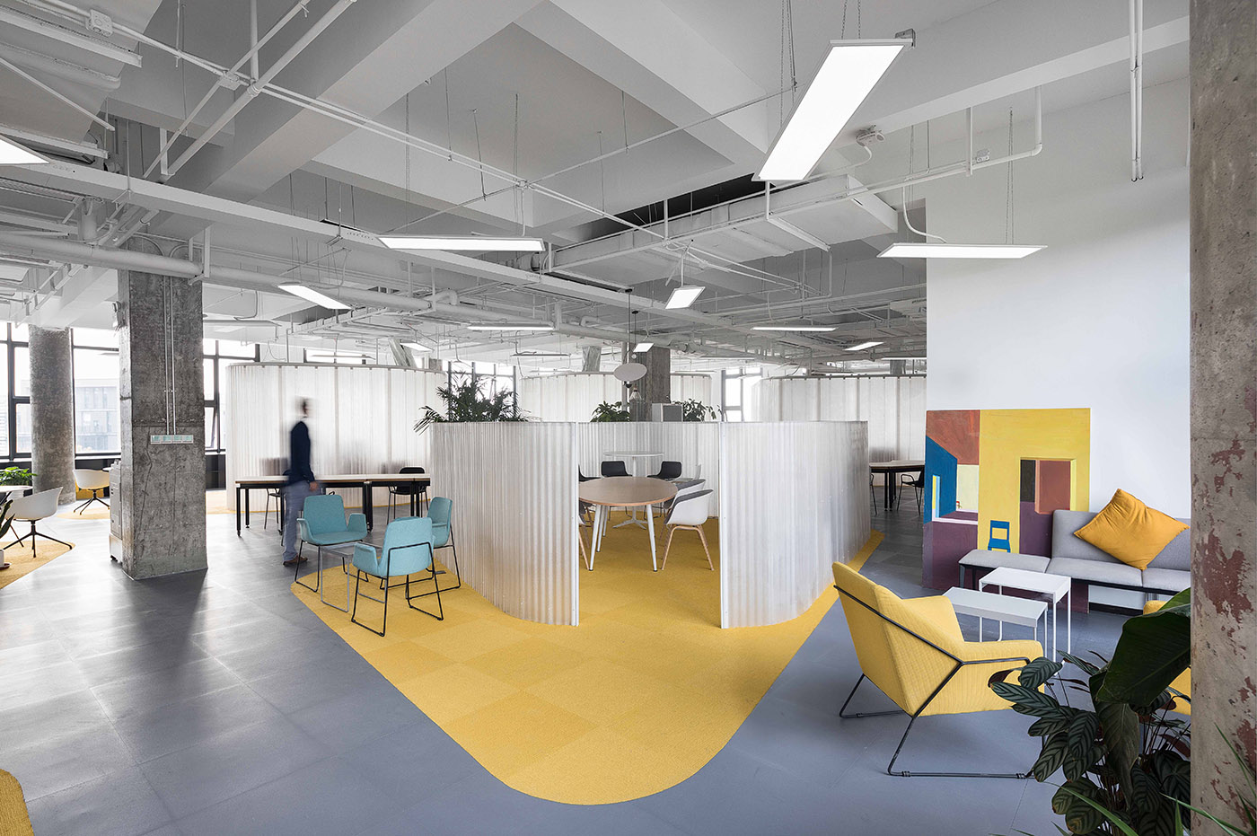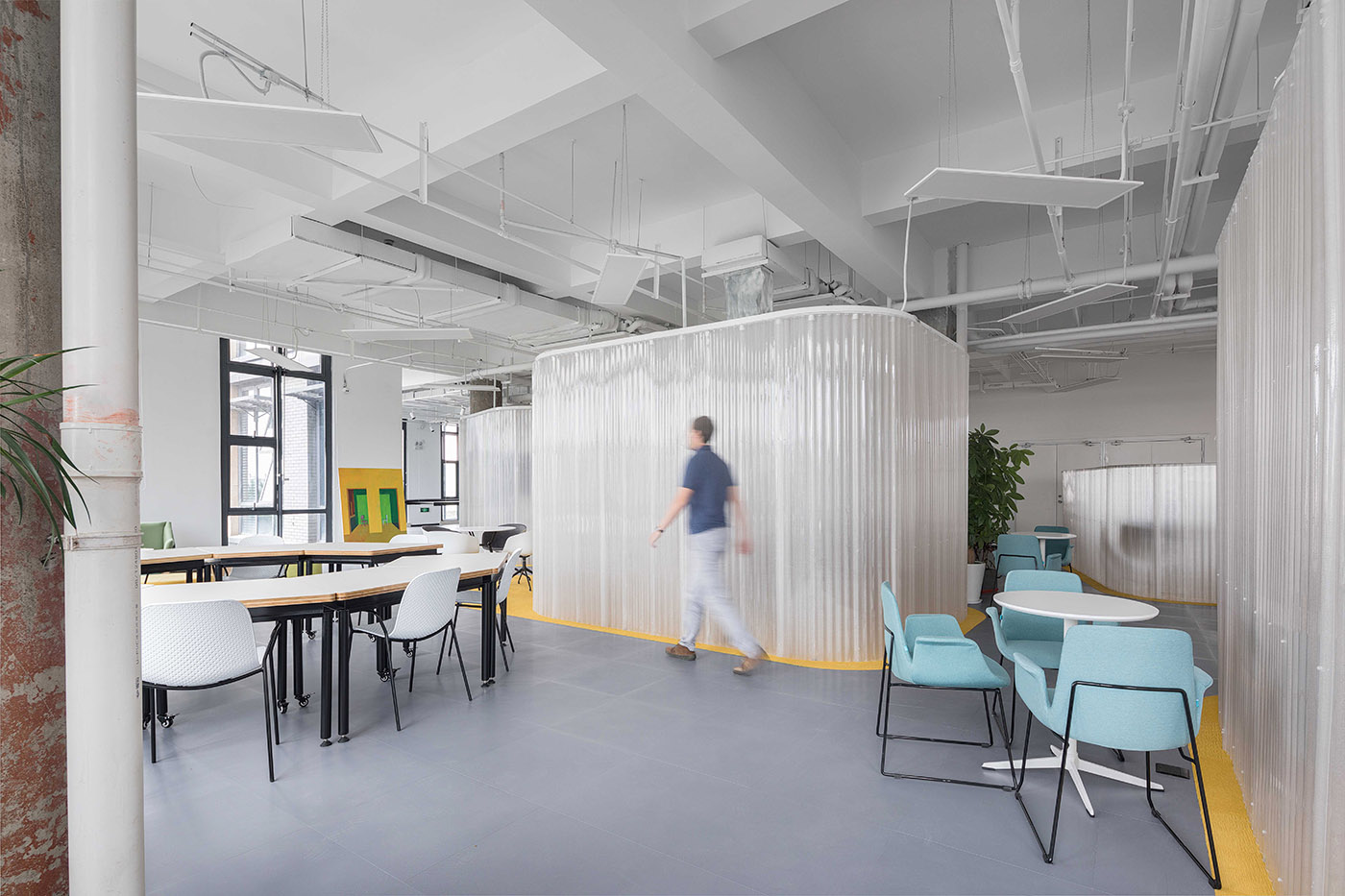 The space is discovered and experienced little by little, you discover multi-directional views of a fluid and dynamic space, where there seems to be neither a beginning nor an end. Each user feels free to experience his or her own spatial sequence.