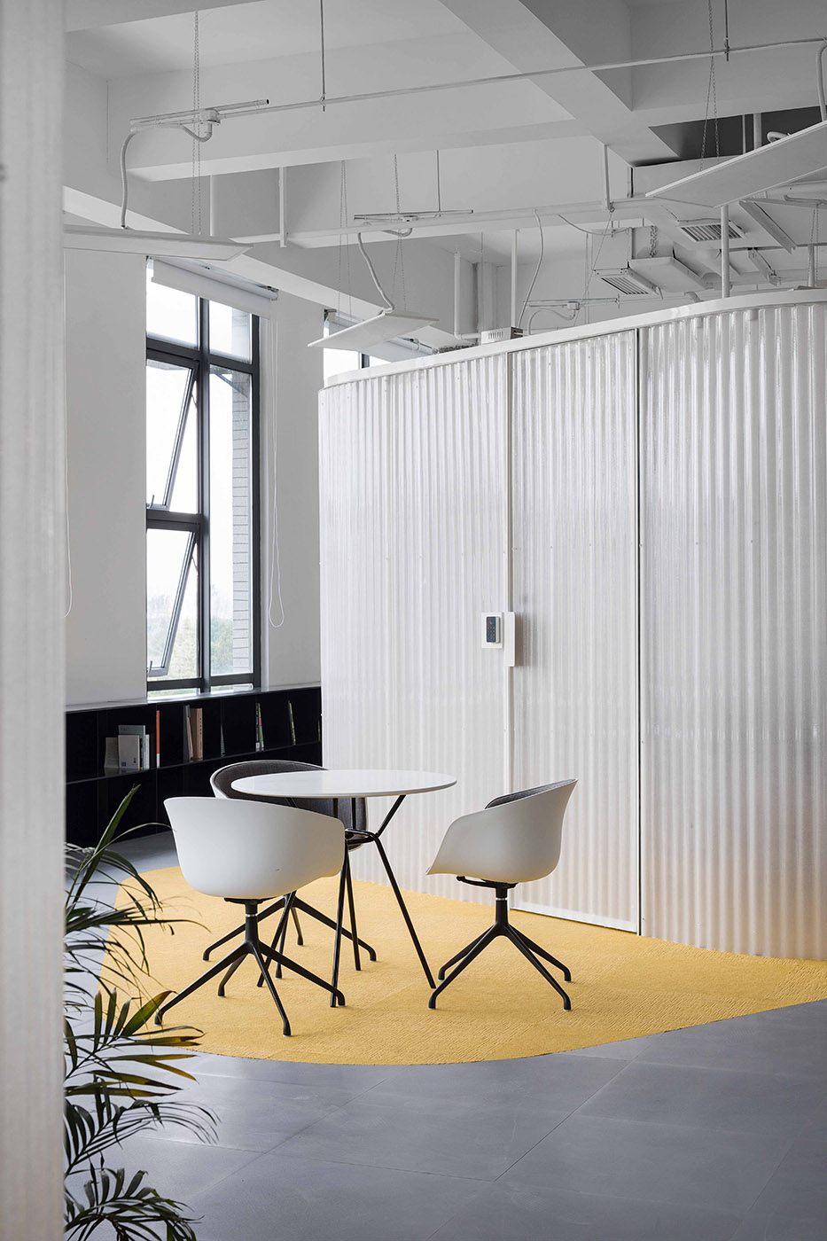 MCVR Studio offers an alternative working environment to the traditional layout, in which adaptability and fluidity generate a dynamic space open to visual simultaneity and the many different activities that are carried out in the office