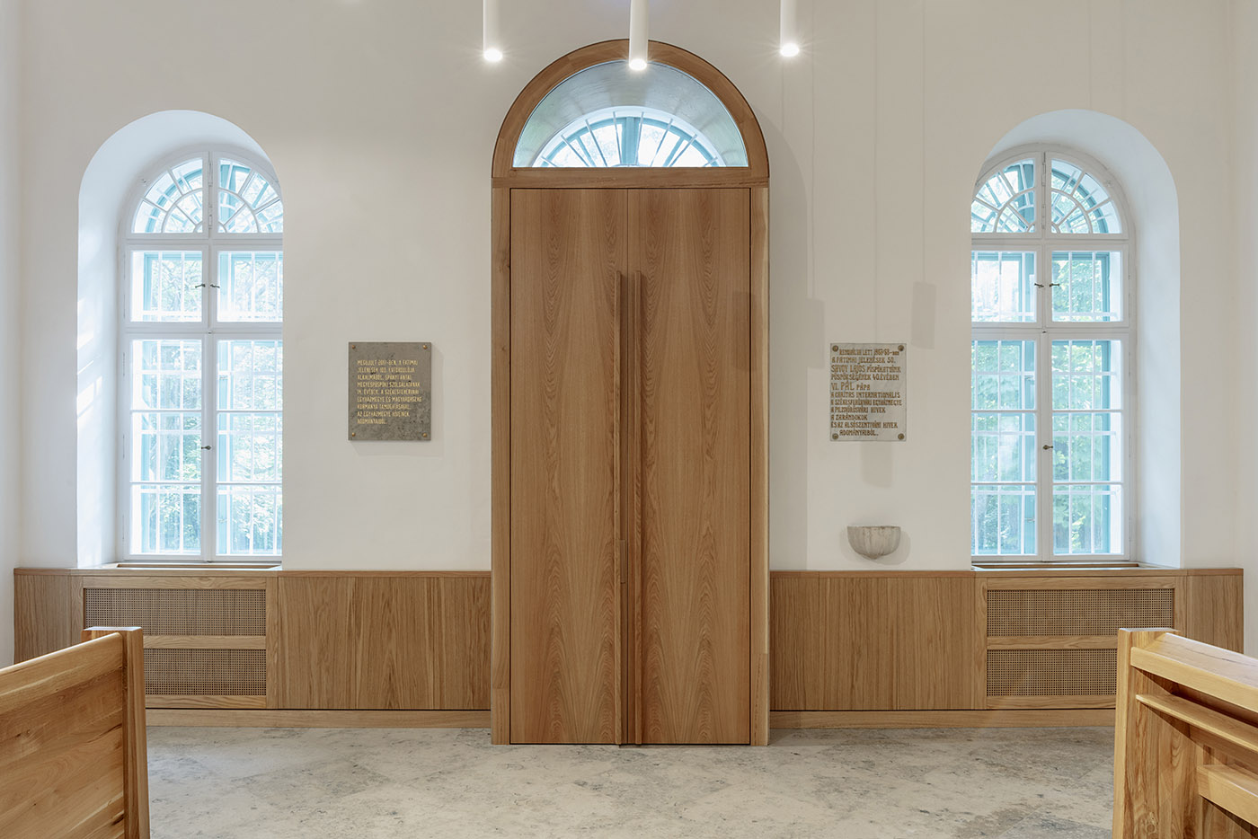 The new stone altar forms the emotional centrepiece of the interior renovation of the church; it was built from the base of a twenty-ton monument that was found on a site occupied by Soviet military barracks