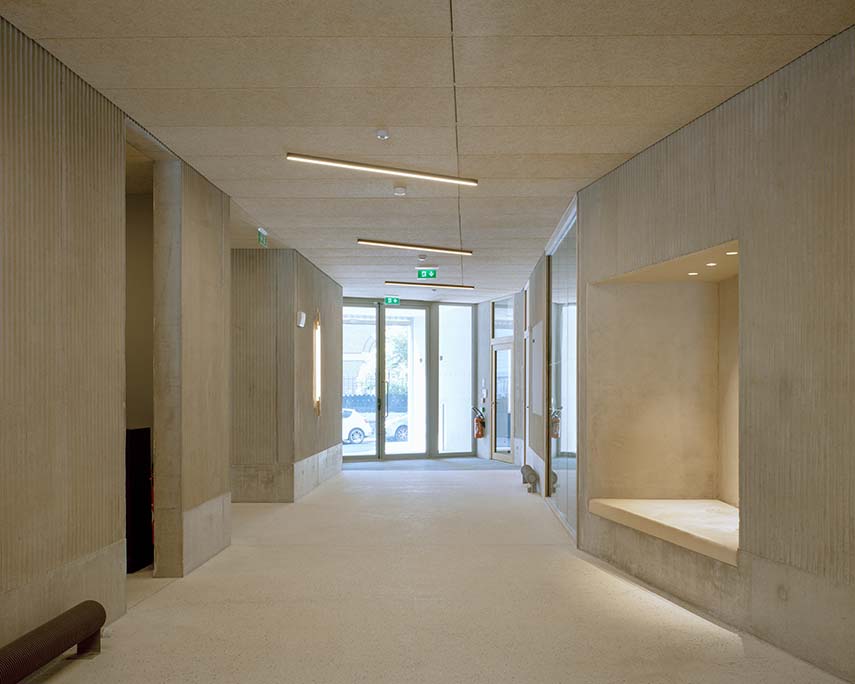 Founded in 1875, La Sirène is one of the oldest independent amateur harmonious orchestras in Paris. Finally, thanks to one of the architectural projects by the Avenier Cornejo Architectes studio, in 2024 it is equipped with an auditorium worthy of its importance: the Pavillon La Sirène which occupies the ground floor and basement of the new building. A covered entrance, decorated with moldings reminiscent of Art Deco, leads through the monumental staircase to the rehearsal rooms with a glass foyer on 3 sides