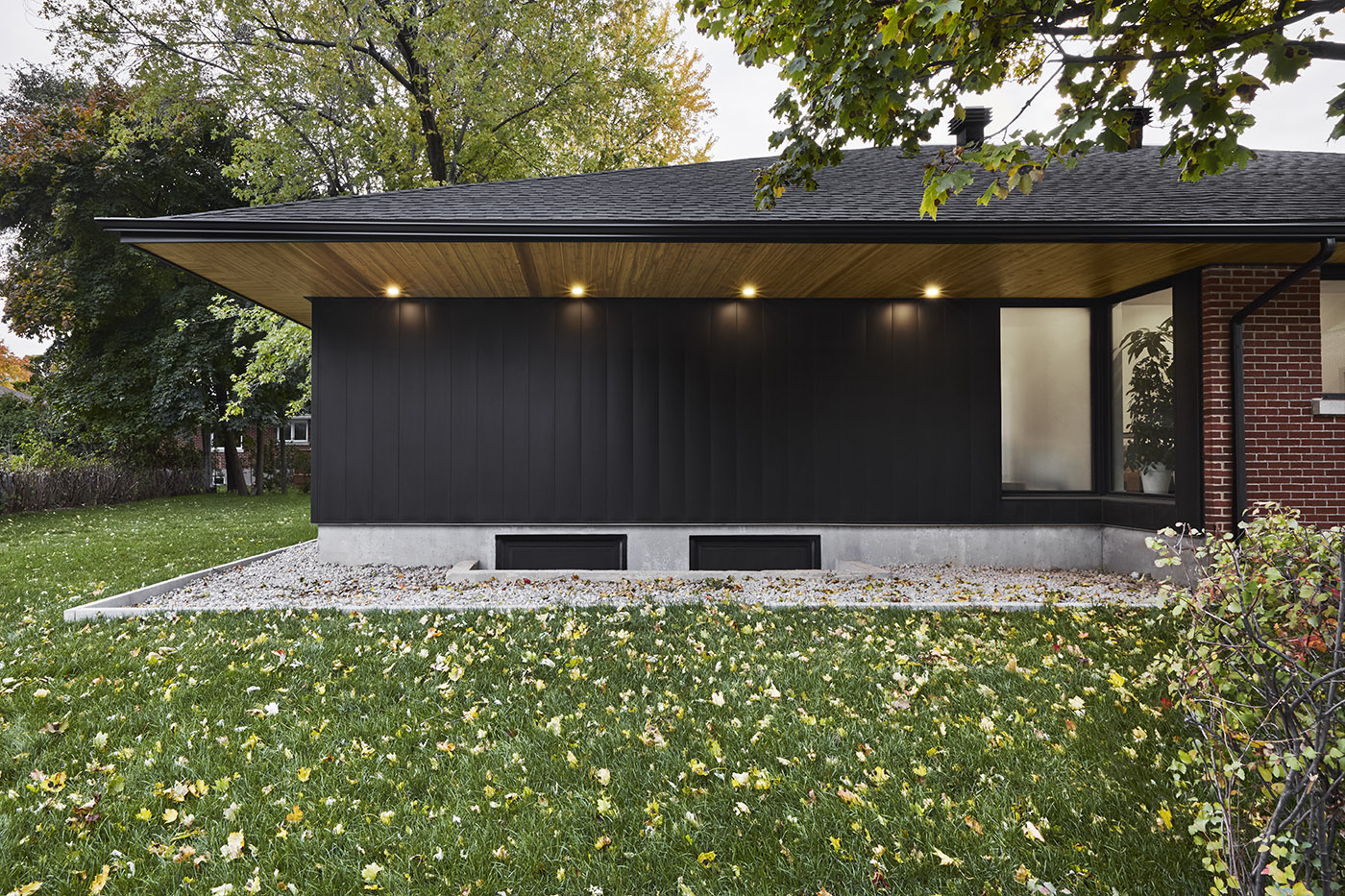The owners' need, which sparked the realization of this project, was the desire to move into a home with well-balanced living spaces and an outdoor space that would allow their children to play freely in the surrounding nature. After some research, the couple fell in love with a bungalow surrounded by trees on the north side of Montréal