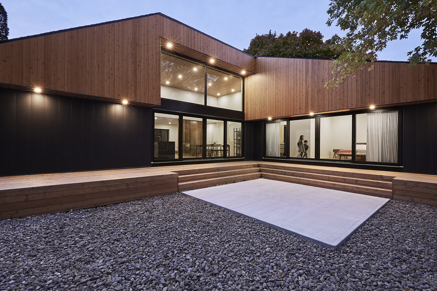Special emphasis was placed on the use of certified wood and metal to create durable, environmentally friendly exterior cladding. As wood is used outside and inside the home, it is hailed as a "living" material that is warm and sustainable. With its style, materials, spatial organization and variable energy strategies, Pearl House is the very definition of green architecture, greatly enhancing the quality of life for the family who dreamed of living close to nature