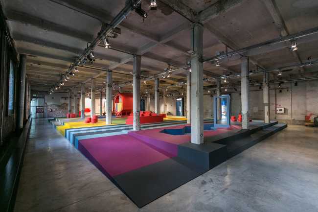 The Aberrant Architecture Studio with Landscape for Play is on its second exhibition space project dedicated to free play. In an old abattoir in Madrid, a playground is created which is based on free time and moves the forms of the surrounding city into an interior space