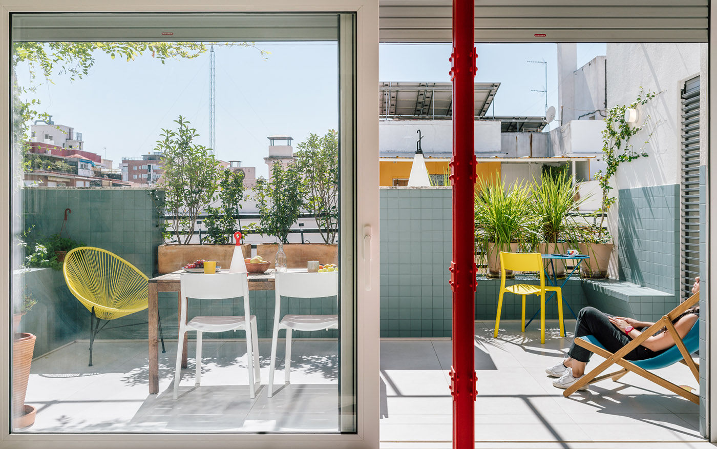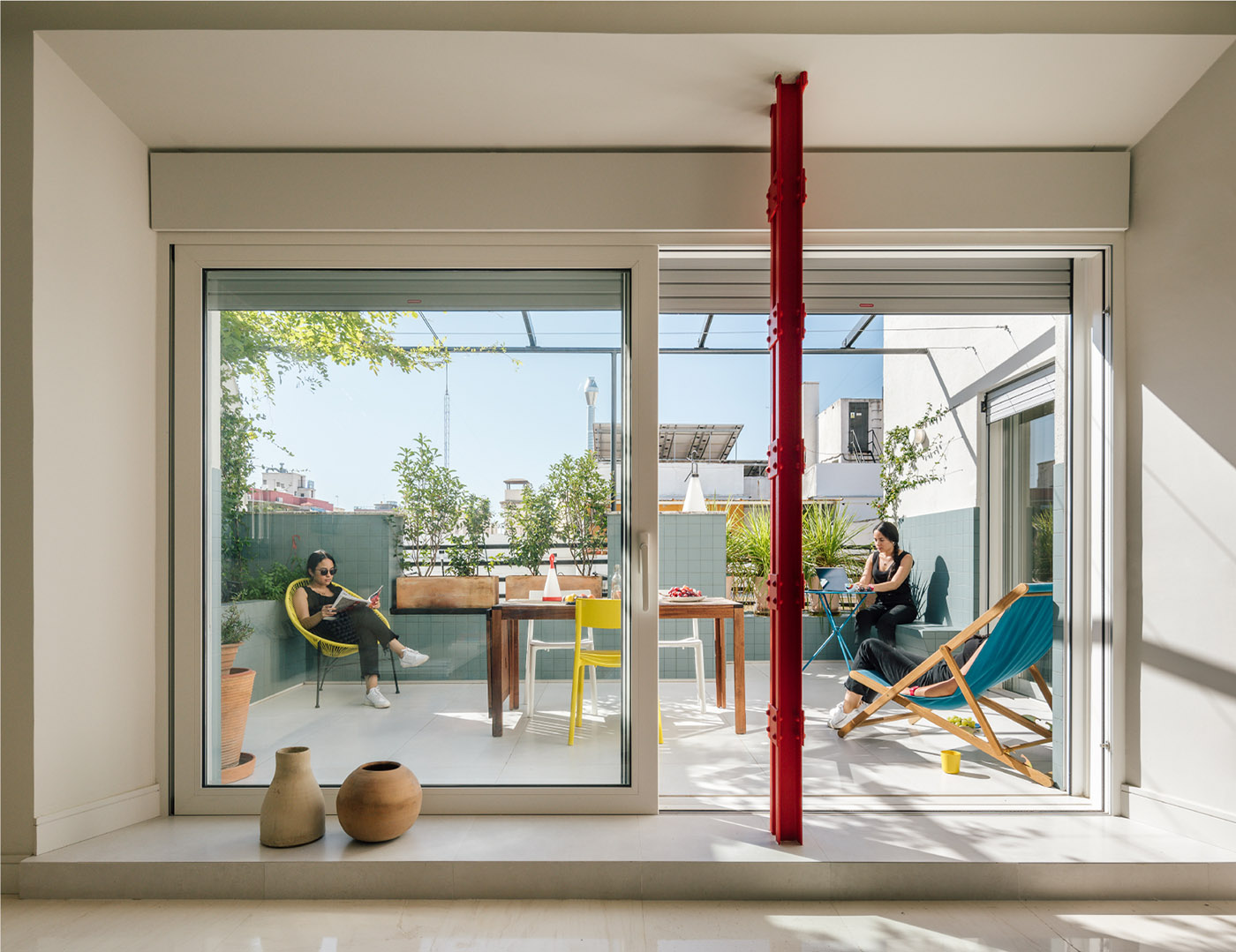 In the ambitious renovation POOLGREEN project undertaken by gon architects, Maria José and Ernesto's attic undergoes a significant overhaul driven by the underutilization of its terrace space. Because of the little physical and visual connection between the interior and exterior space and the difference in elevation between the terrace and the house, the aim from the beginning was to completely redesign the interior space, starting from the entrance