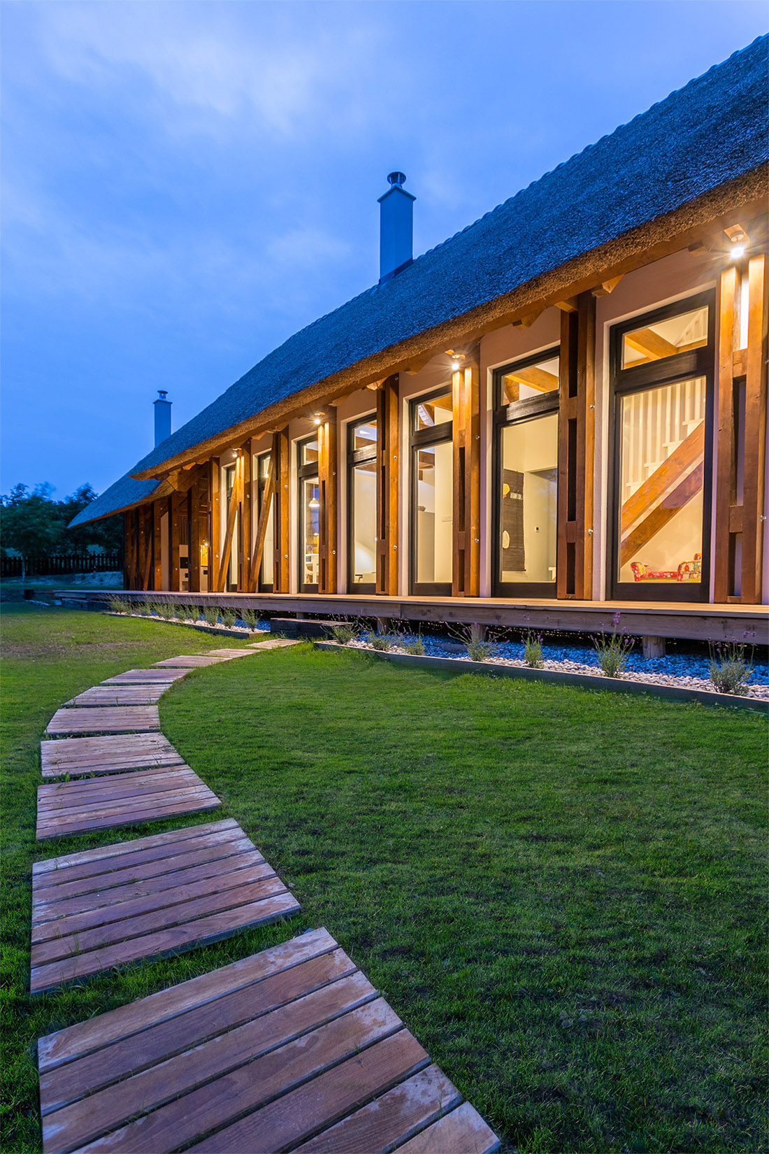 The building, surrounded by nature, is the fusion of local primitive architecture and modern construction elements. The result is a unique atmosphere, which takes into account the importance of the relationship between man and nature