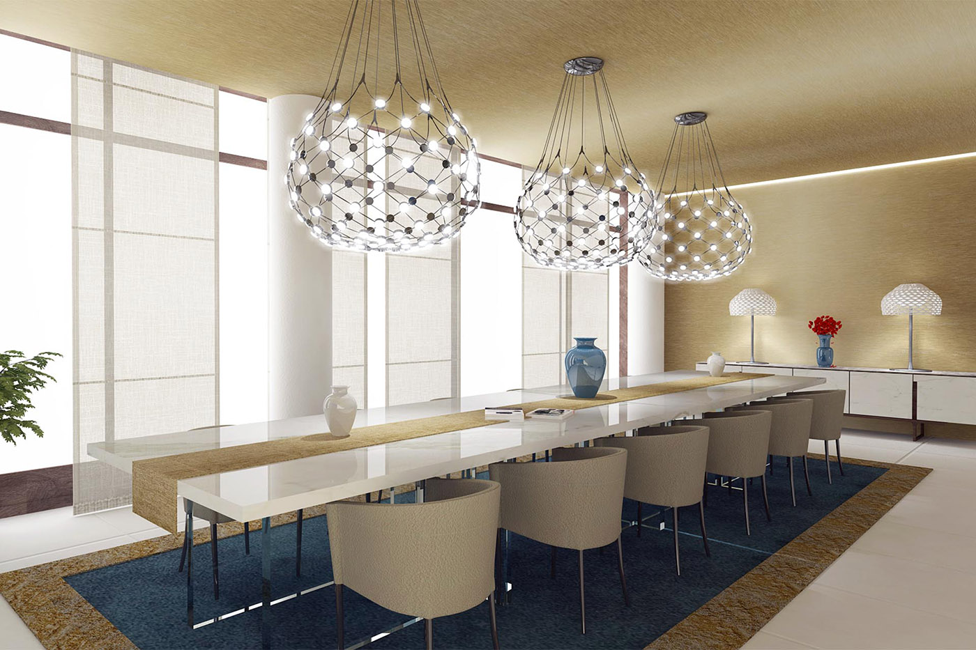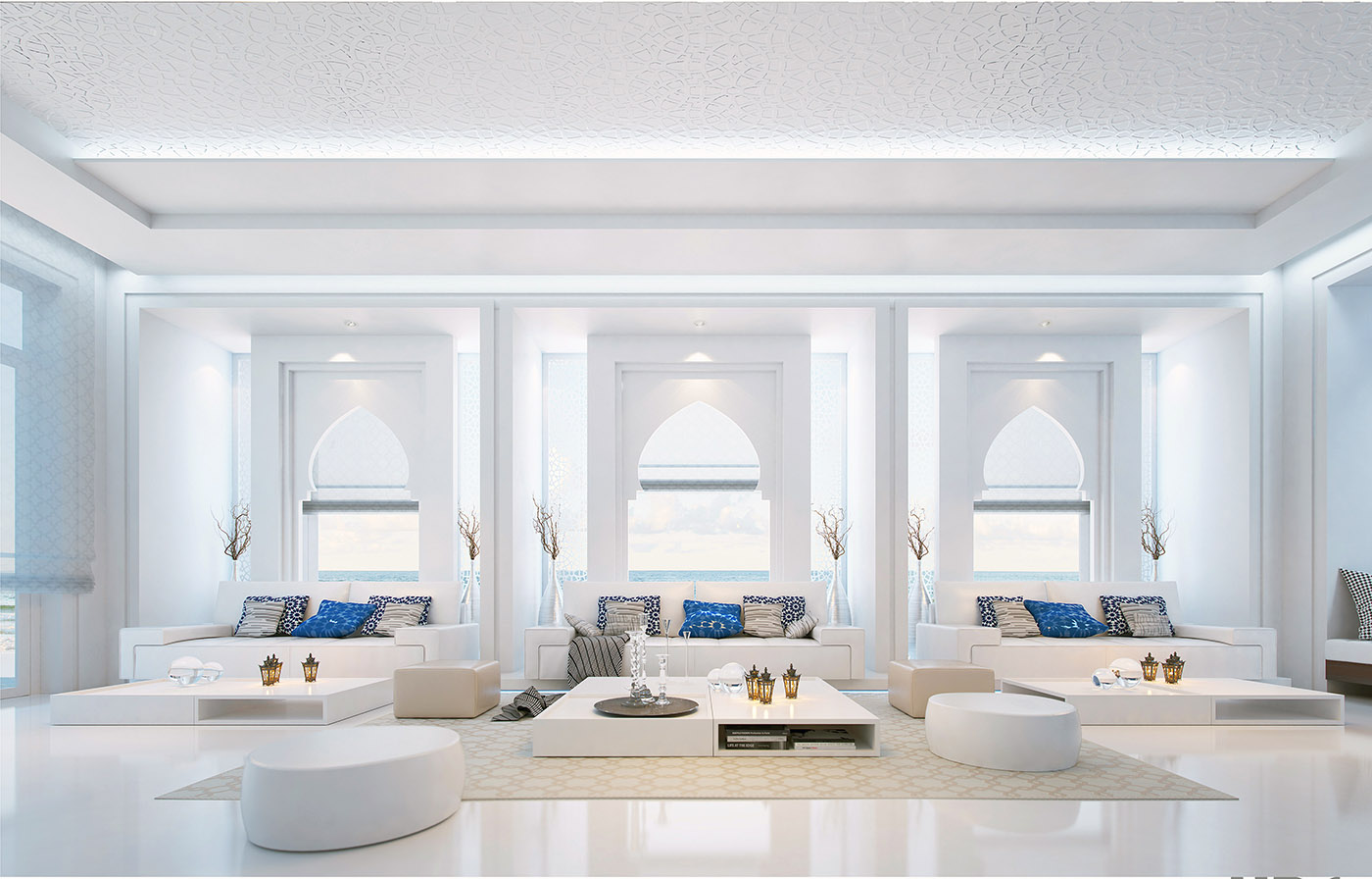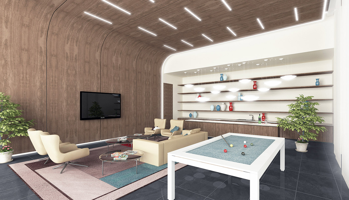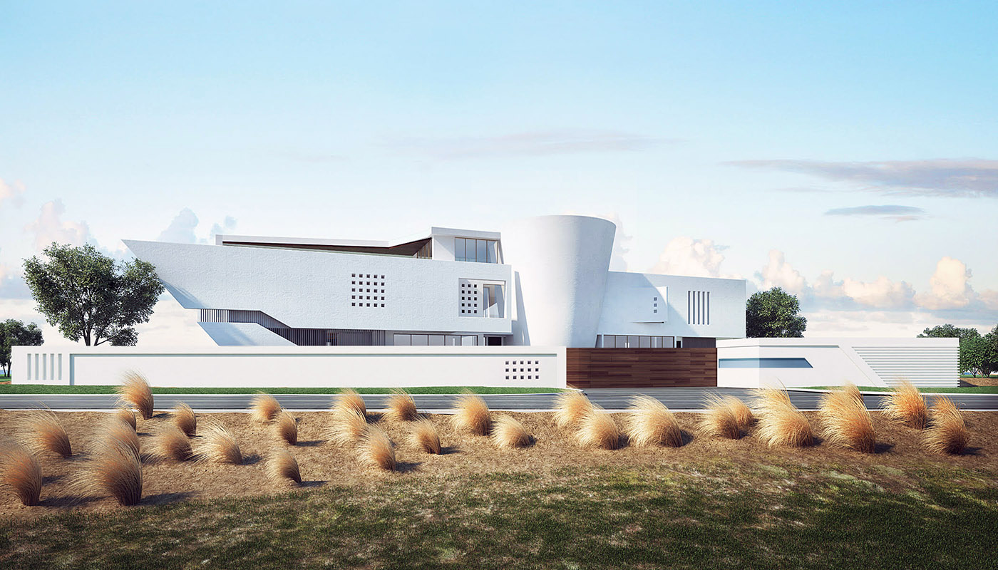 The villa, designed by UPA studio, is located on a plot of land between a fast-moving road and a narrow stretch of sea. The north entrance front facing the road has been designed with a semi-solid treatment to preserve privacy. The horizontality of the front has been balanced by the volume of the stairs with a cone-shaped form.