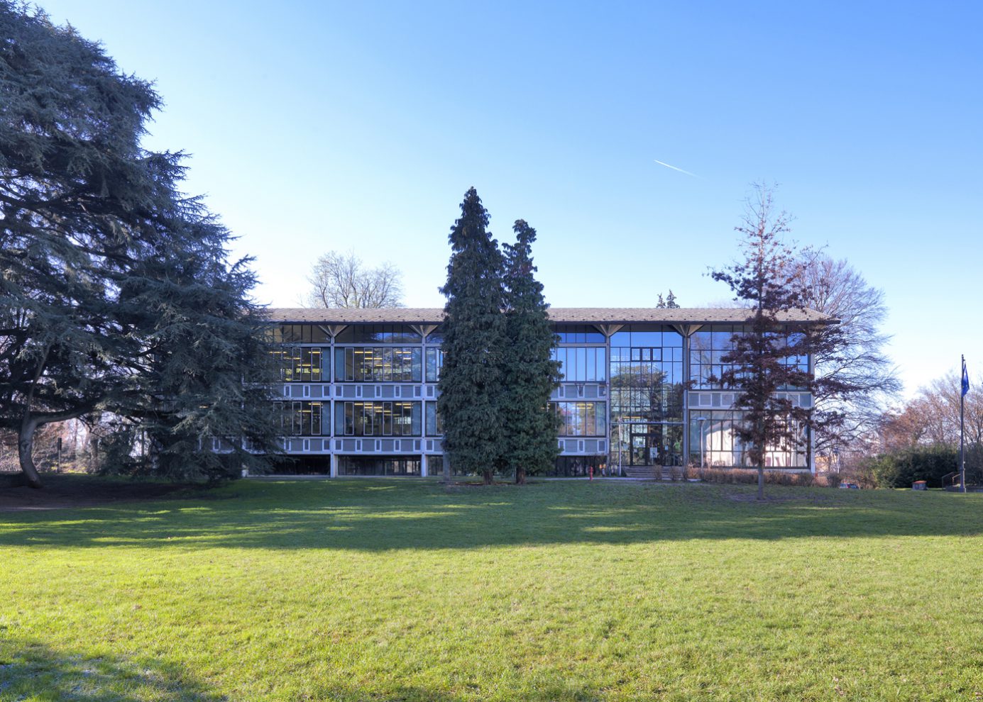 Designed by the architect, painter and sculptor Enrico Castiglioni, the Plesso a Vetri is a rare and interesting example of a modernist school building, which came into operation in 1963 and is now subject to monumental constraints due to the uniqueness of its architectural concept