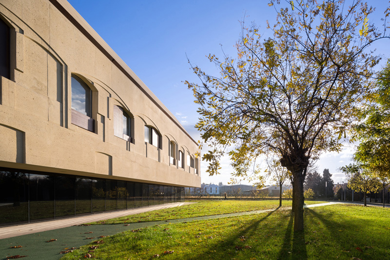 Contemporary buildings have the task of evoking the same atmosphere as the existing one. The building interior is made of concrete and the old geometries such as arches which are engraved in the new facades