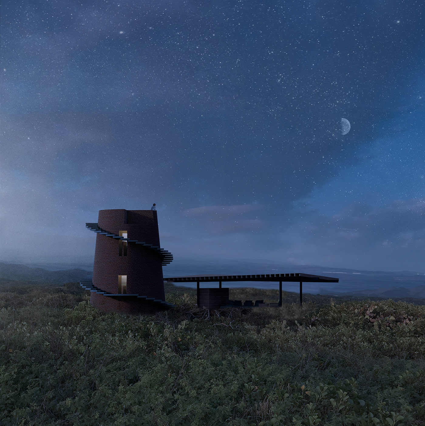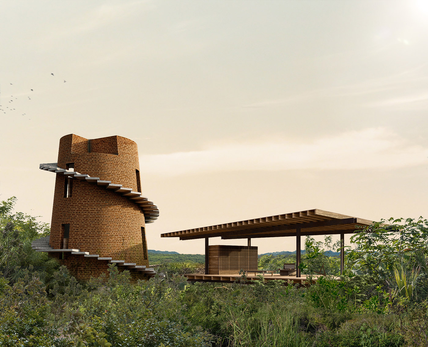 The VERTEBRAL studio, in collaboration with TAX, is designing two new brick housing typologies. The towers, in one type with a circular base, in the other square, house two bedrooms one on each floor. These overlook the landscape by reaching wide views of the sea