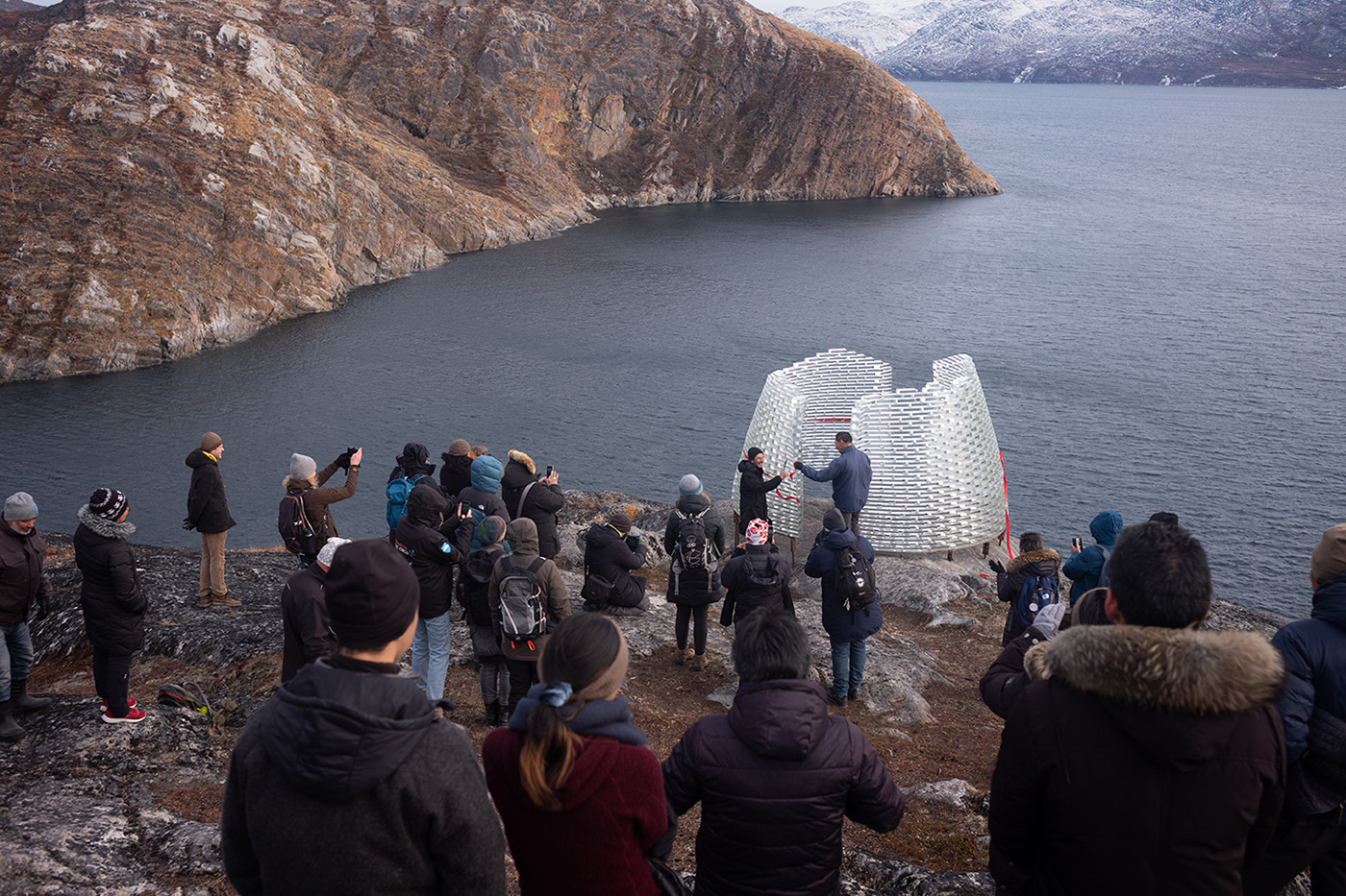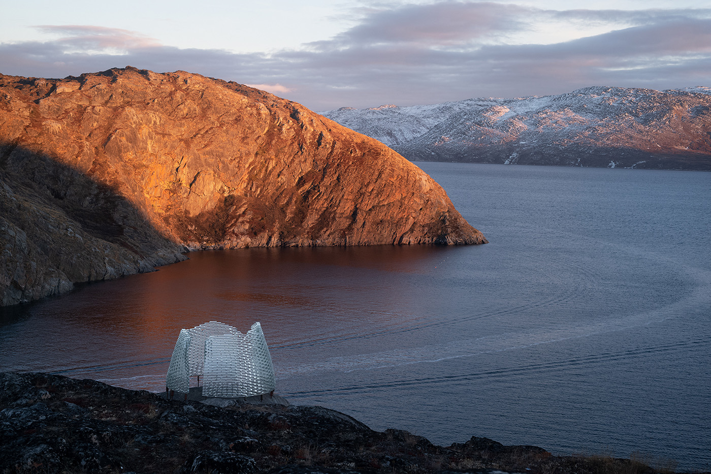 Designed and built by architect Konstantin Ikonomidis, in collaboration with the municipality of Qeqqata, the Qaammat Fjeld pavilion is conceived as a poetic and aesthetic object, but more importantly as a symbolic gesture that recognizes the natural site and the rich history of Greenlandic culture