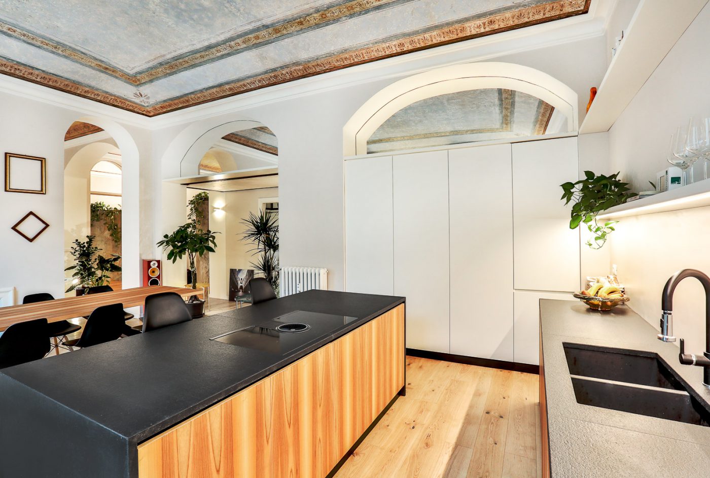 Officina 8A, a studio of Associated Architects, renovates a building in the city of Turin, in an elegant setting, the architects concentrate their design on restoring all the historical features of the apartment that had been hidden over time