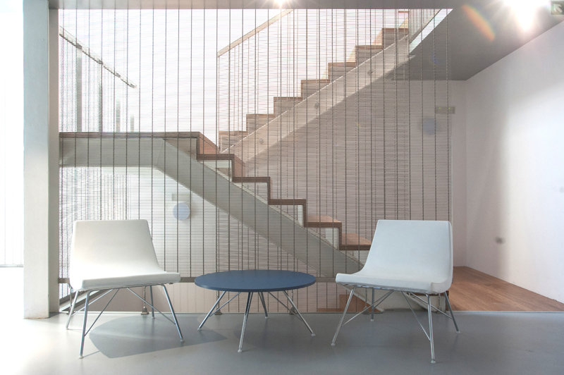 There is a new luminous floor attached to the main facade of the building that acts as an external screen, which guarantees the privacy of the workplace, but at the same time is an element of communication within the company. The envelope that characterizes the building is important in this architecture.