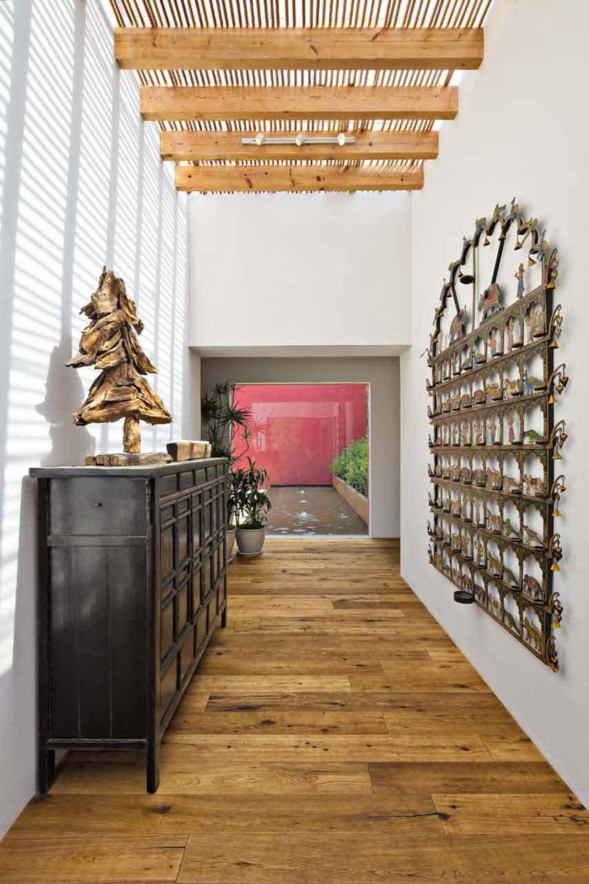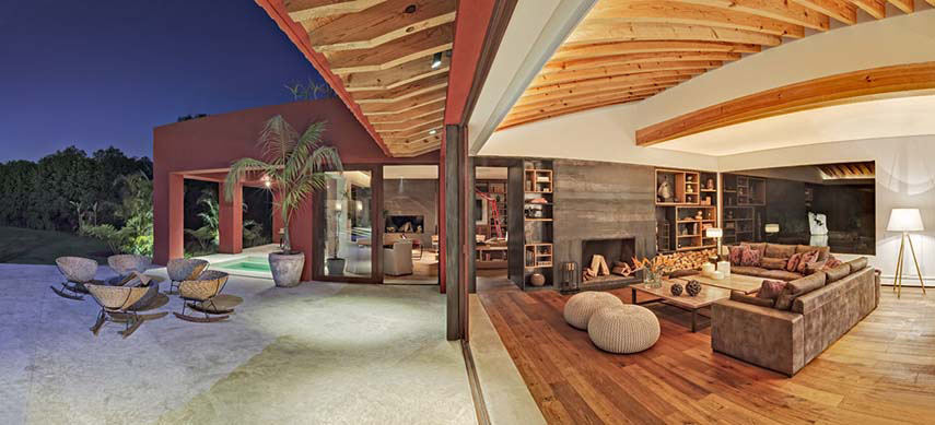 Given the region's pleasant climate throughout the year where Casa Las Moras is located, the López Duplan Arquitectos studio, which oversaw the new configuration, decided together with the clients to make the gardens and terraces of the house carefully designed living spaces in constant visual connection with the interiors. The new garden is enhanced by a covered terrace overlooking the central lake; this leads into a watercourse that crosses and irrigates the lush greenery