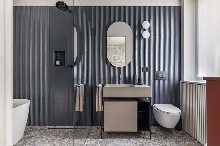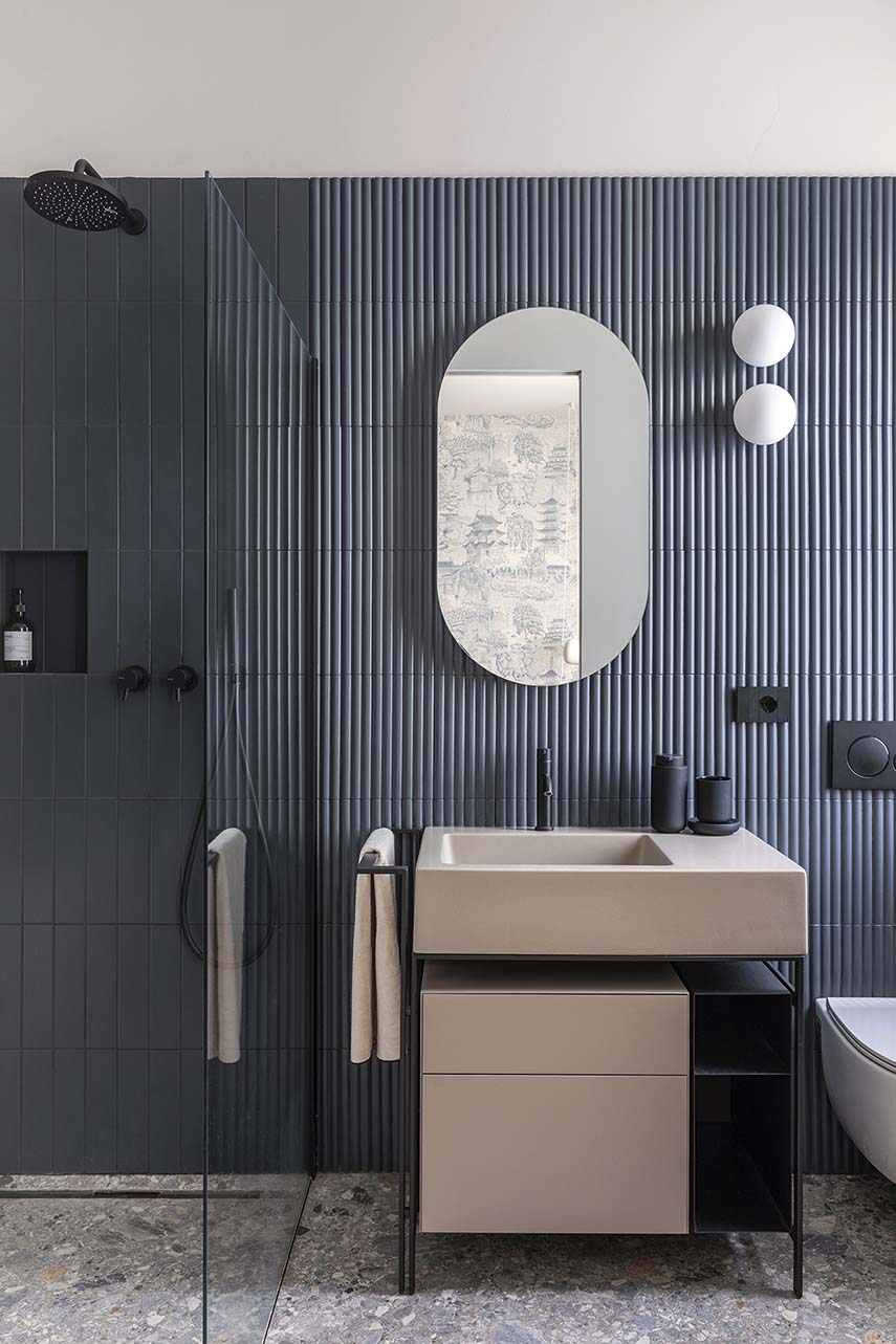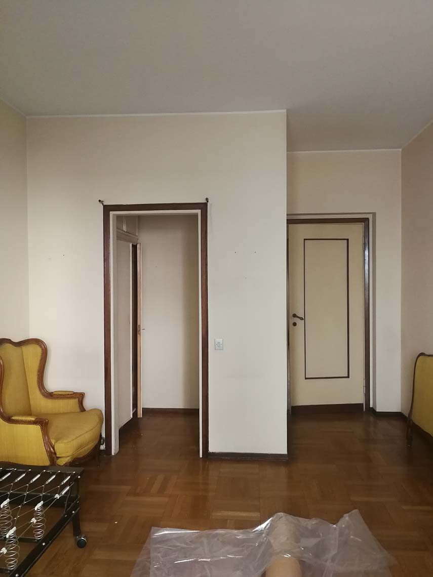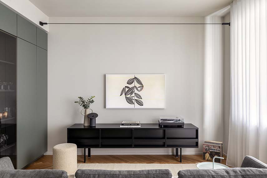 Among the interior design projects by the studio Lascia La Scia, this project transformed an apartment that originally had a closed and inefficient layout, lacking a second bedroom and with the kitchen separated from the rest of the space. The renovation was designed to: create a more spacious and welcoming living room, add a second bedroom, introduce a study/guest room, and optimize space through walk-in closets and hidden wardrobes.