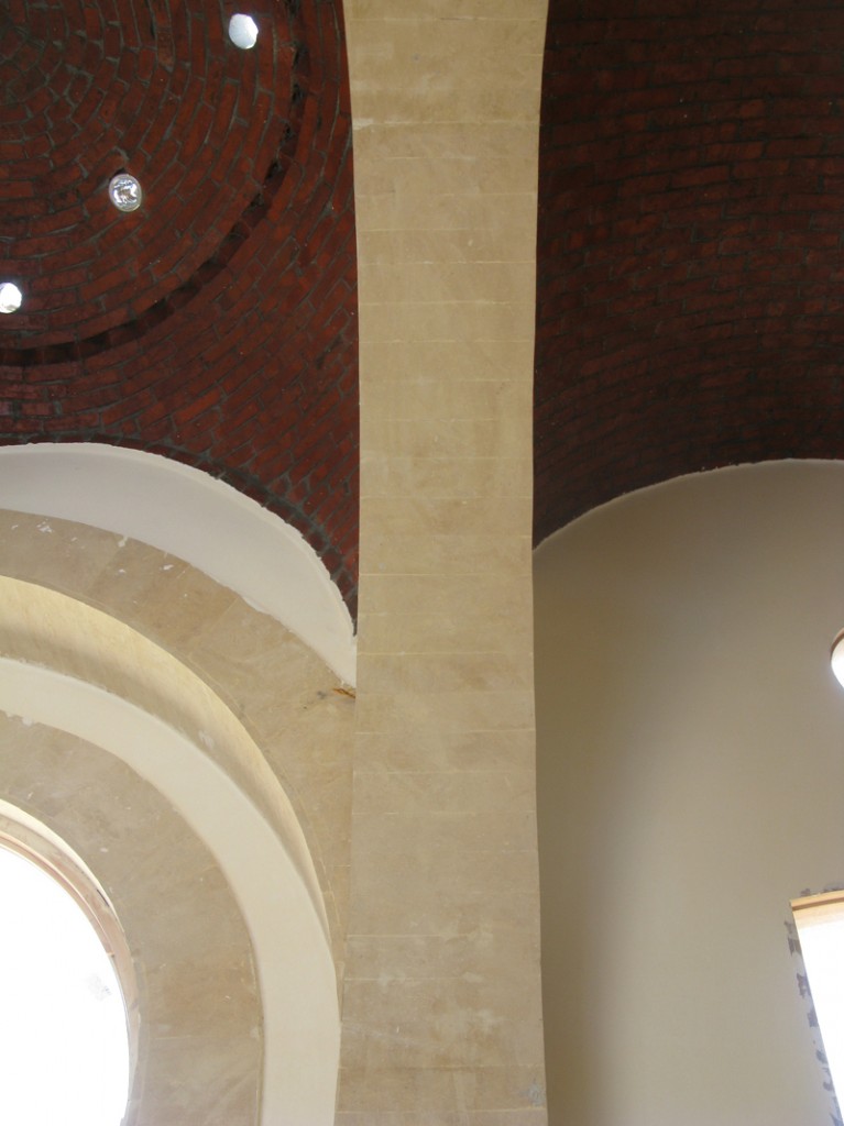 Tutto ciò prevedeva anche la costruzione di un tetto, progettato con il tradizionale sistema portante, con altrettanti elementi tradizionali: archi, volte, volte a crociera, cupole. Oltre ad essere una soluzione più economica ed esteticamente con più di valore, non richiede macchinari pesanti