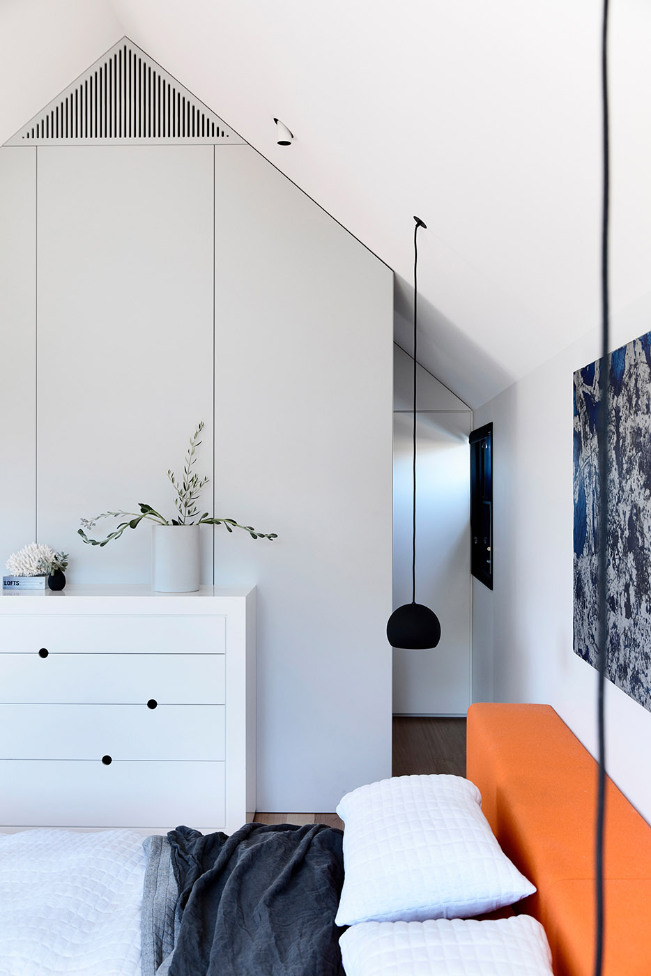 A suburban home that comfortably houses a family of five, their dog, and an art collection alludes to the tall industrial spaces of a converted warehouse. Ola Studio seeks to establish a dialogue with the historic local context by presenting contemporary architecture: Ross's first neighbors are vintage one-story, wooden, white-painted bungalows
