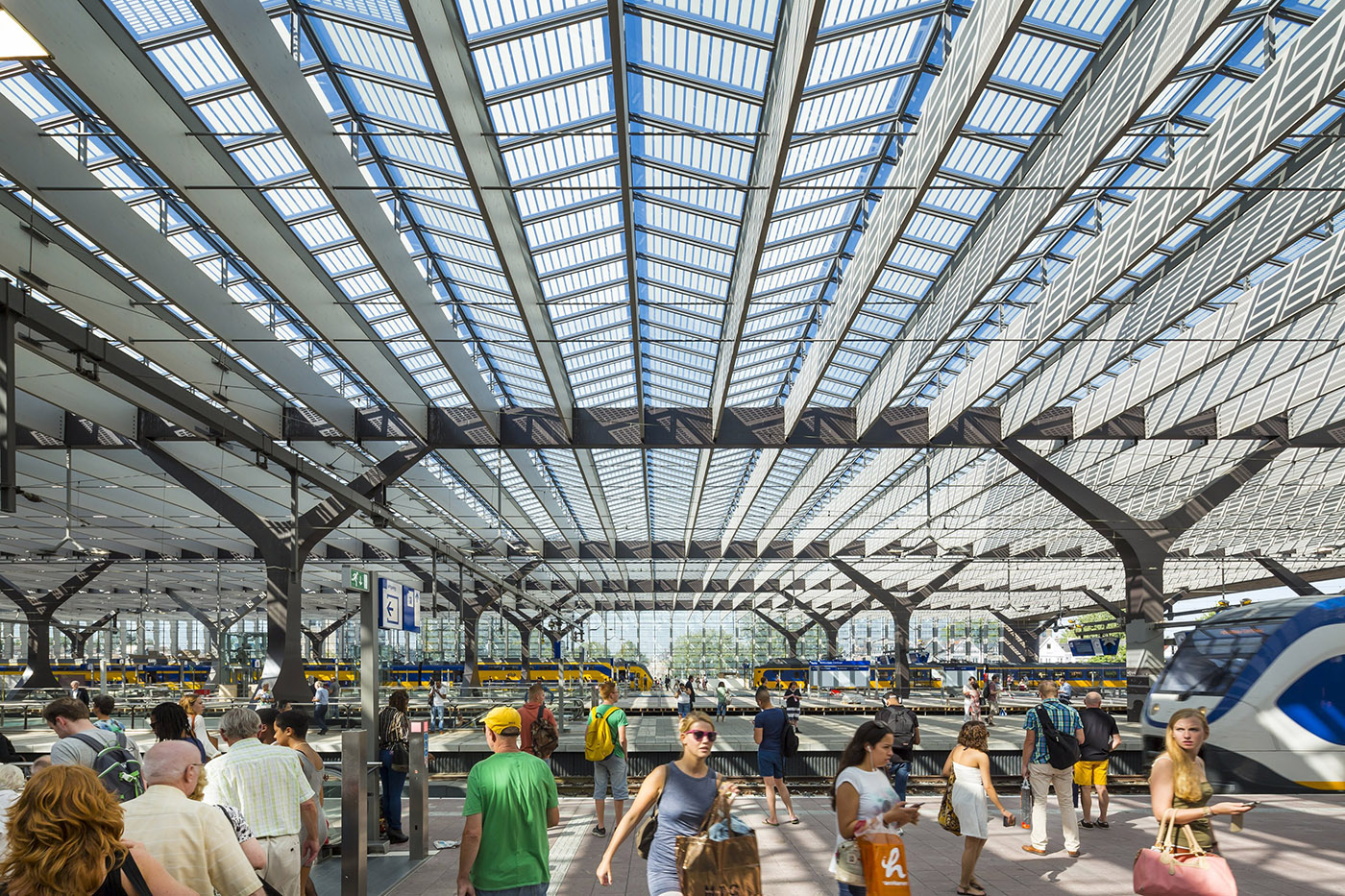 The Rotterdam Central Station, designed by Benthem Crouwel Architects, is more than just a station: it is a symbol of connection between landscape, architecture, and city, representing one of the most significant contemporary urban architecture projects. With its titanium roof and large glass facade, it resembles an ocean wave, evoking water as an element that includes and promotes communication. The station opens up to the urban center with a dynamic architectural language, welcoming streams of travelers and transforming into a square for the city.