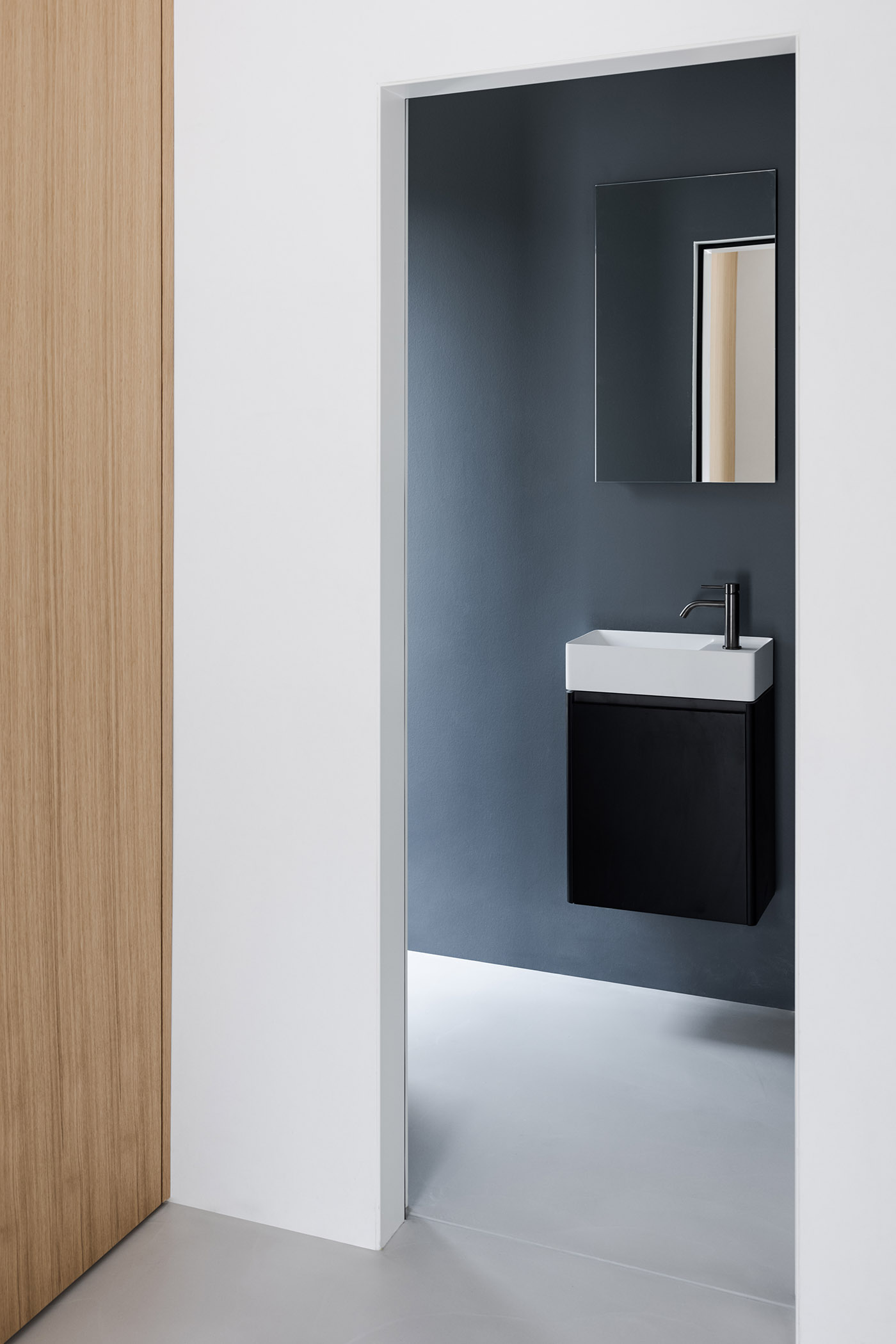 To meet the challenge of building on the existing topographic conditions of the site and adhering to legal requirements, the building was separated into series of units with a common portion. The exposed surfaces made of sandblasted cement-based material have not only a certain aesthetic value, but also a protective function, significantly reducing the energy consumption of the house due to its good insulation and climate shielding properties. This material repairs rooms and spaces during both the hottest and coldest months