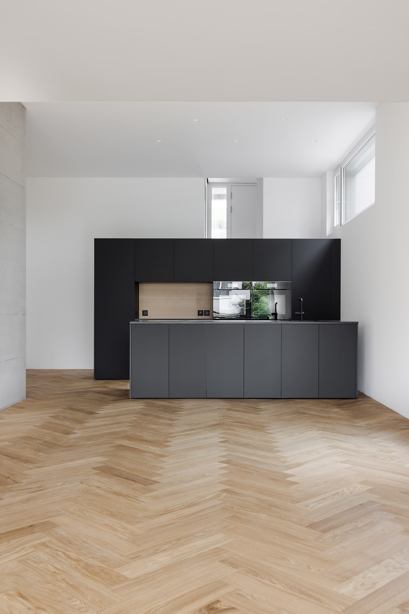 The Rottmannsboden duplex house, with its modern and simple architectural design, features a limited choice of materials, wood and concrete, which work in harmony and offer extremely elegant and relaxing interiors