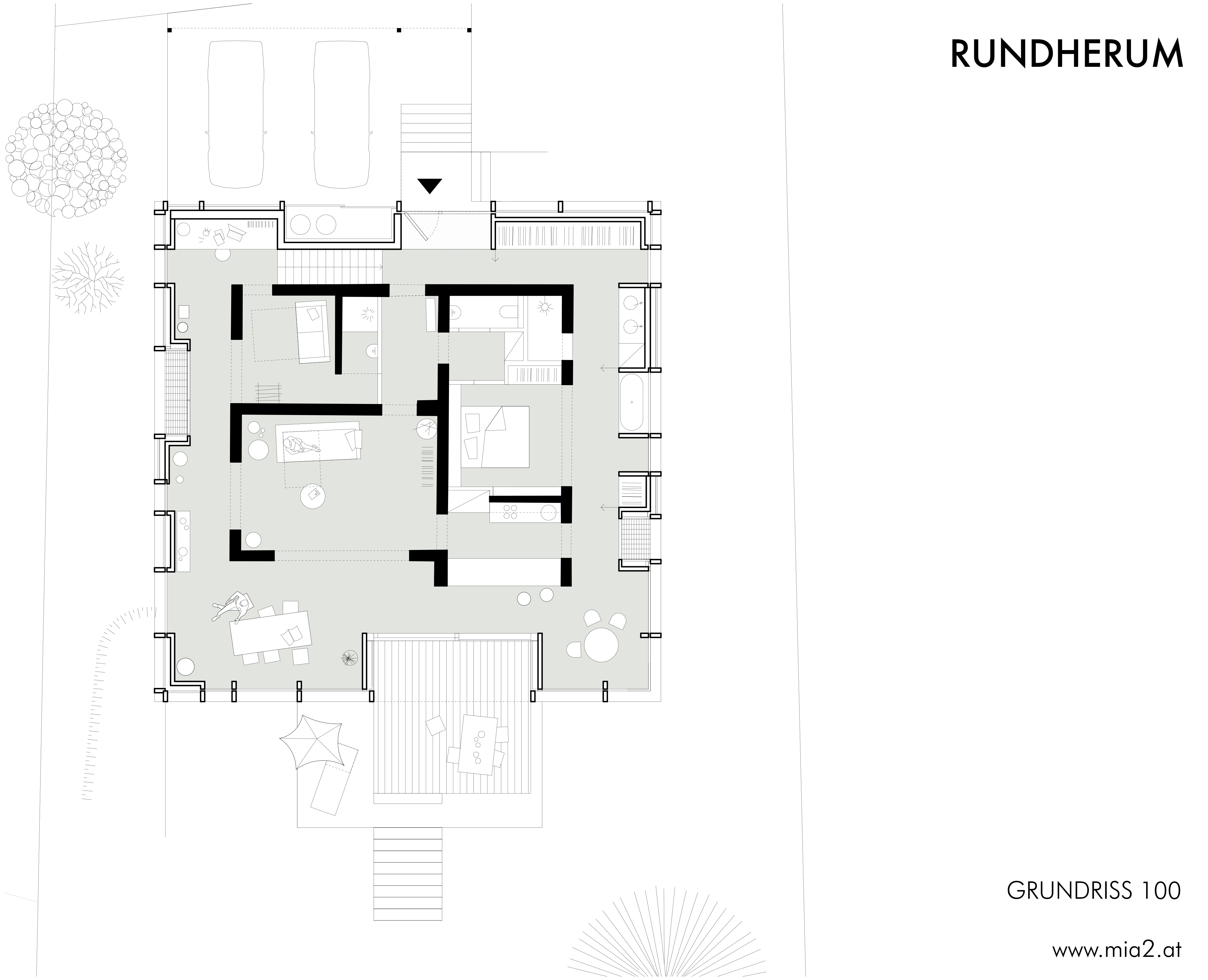 The house is deprived of the pitched roof, the garage demolished, some openings are widened, others closed, while the internal structure remains the same and is fused with the second layer around it. Thanks to the new external wall, a rhythm is created in the house