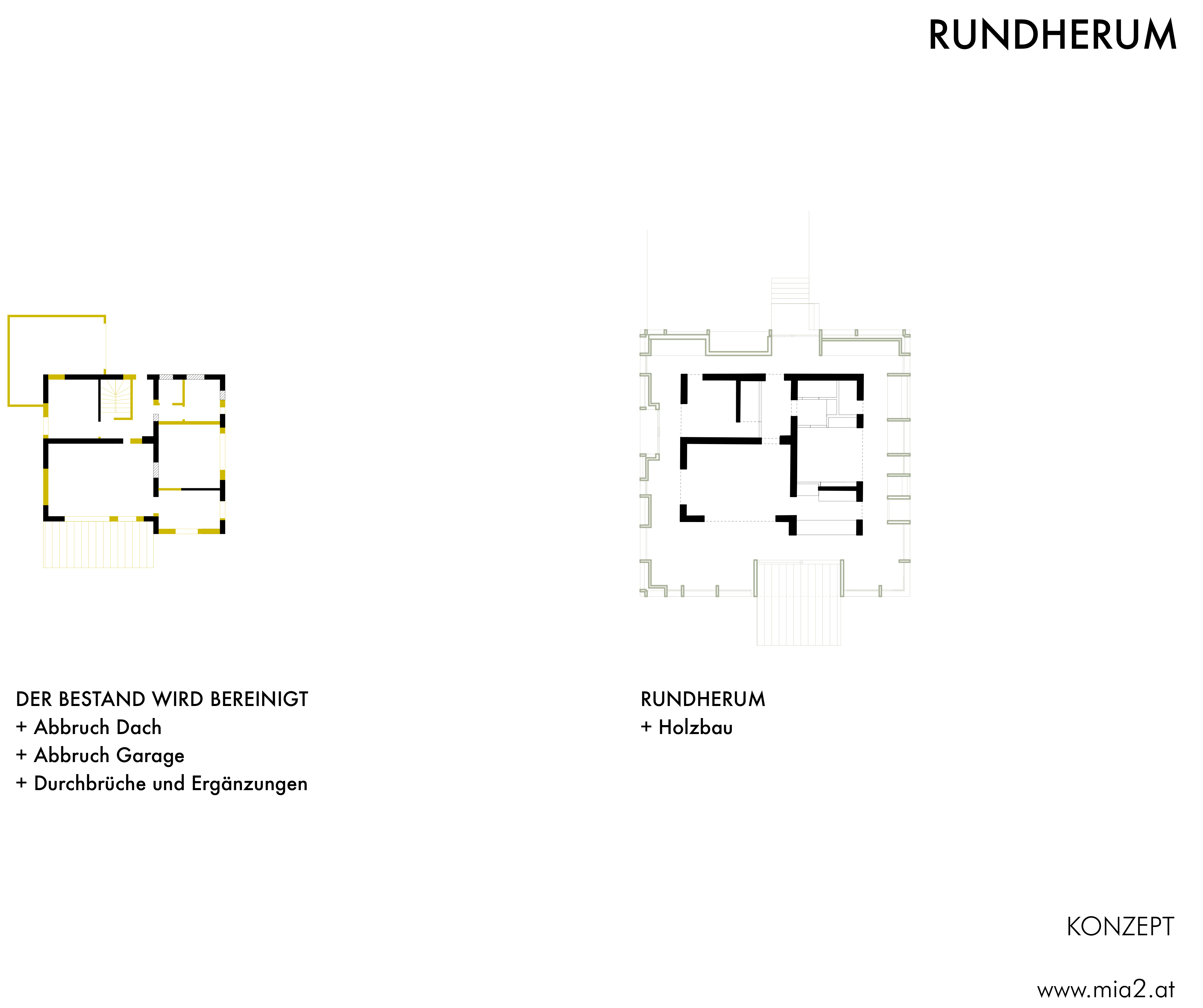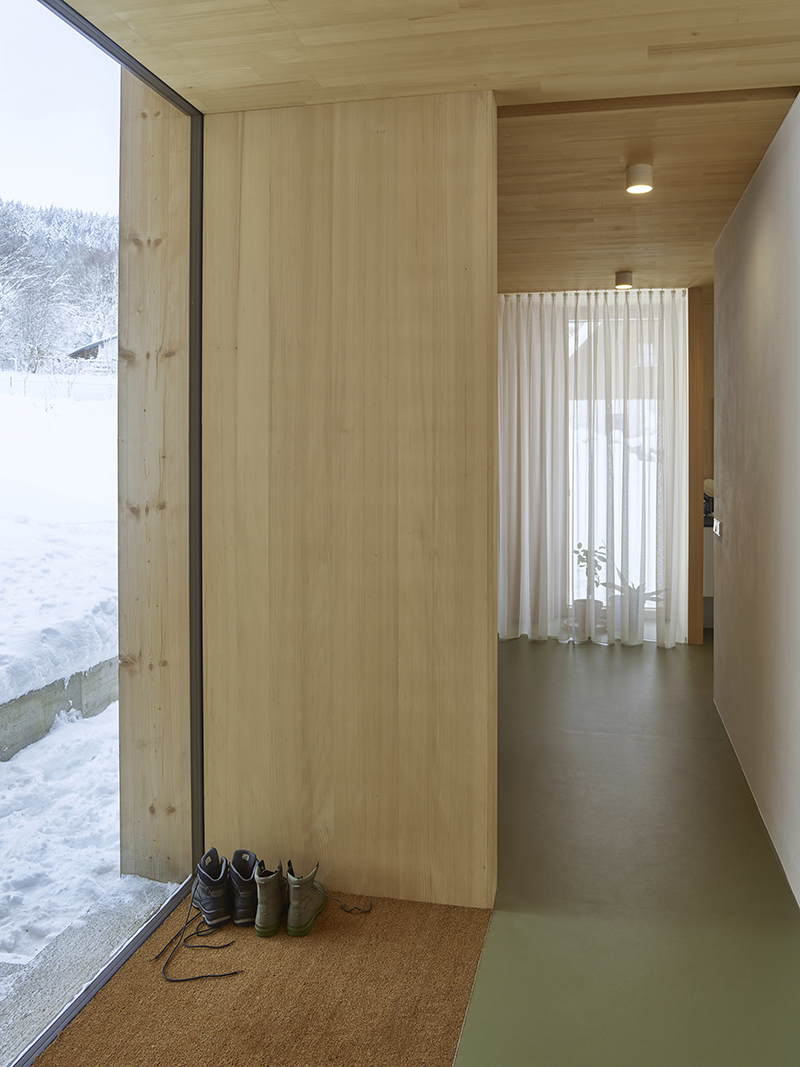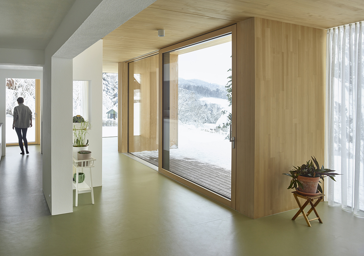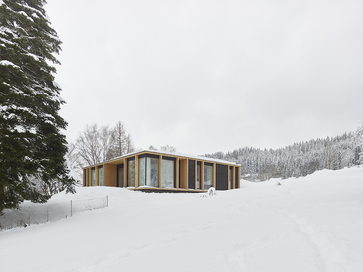 The property is located in the middle of the Mühlviertel, on the edge of a rural village, with views of hills, forests, meadows. The original solid construction remains, including the outer walls that serve as the core, while the missing surfaces and functions have been added as a circumferential expansion consisting of wood and glass