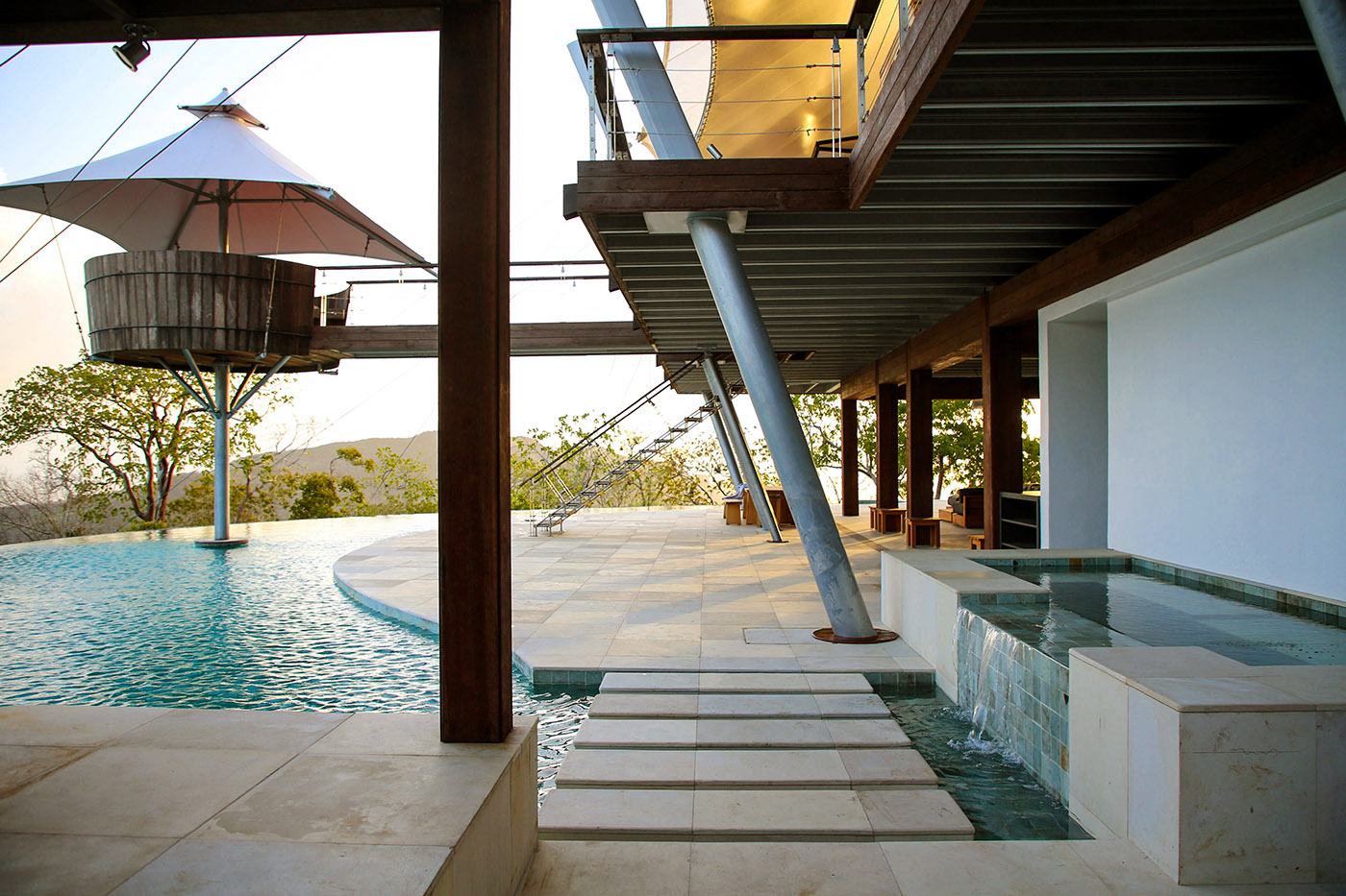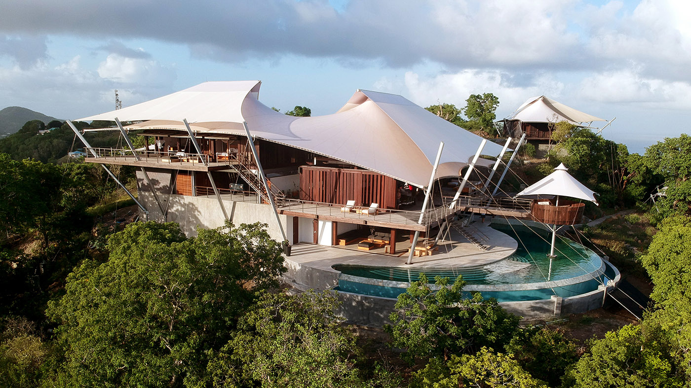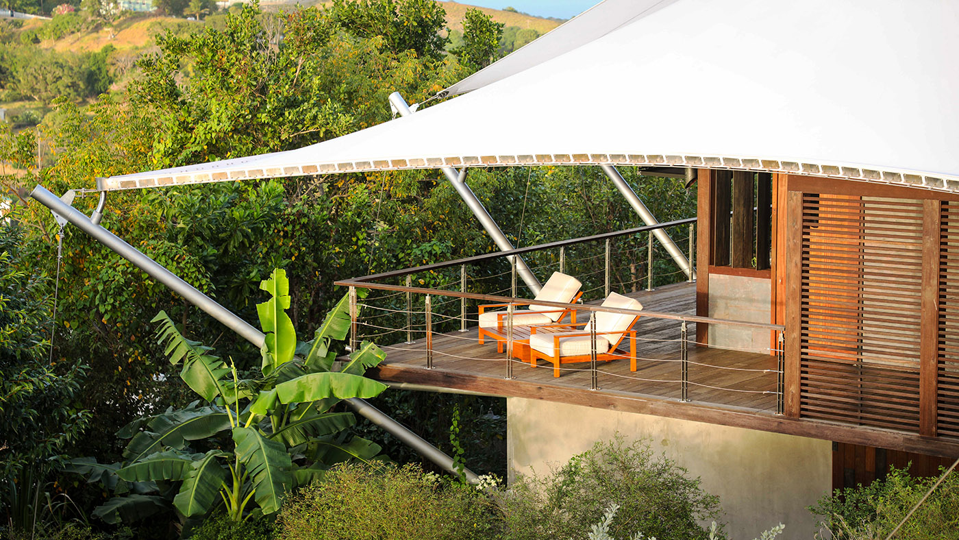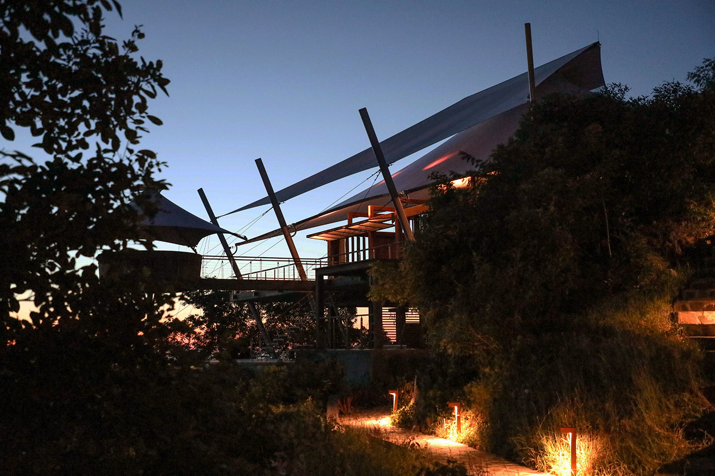 The main inspiration of architect David Herz, awarded for his numerous sustainable architecture projects, was the wooden boat with its masts and sails. Due to the difficulty of on-site construction, the buildings were prefabricated, packed into 15 containers, and shipped, maximizing efficiency and minimizing waste.